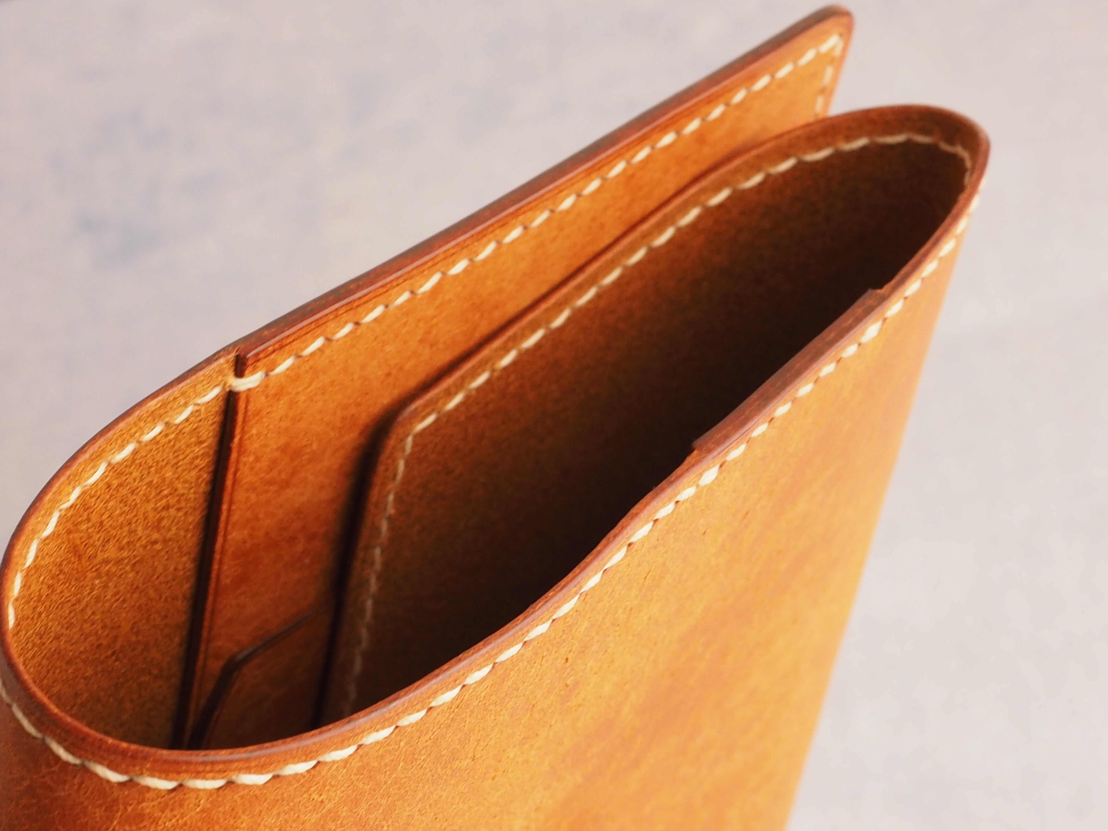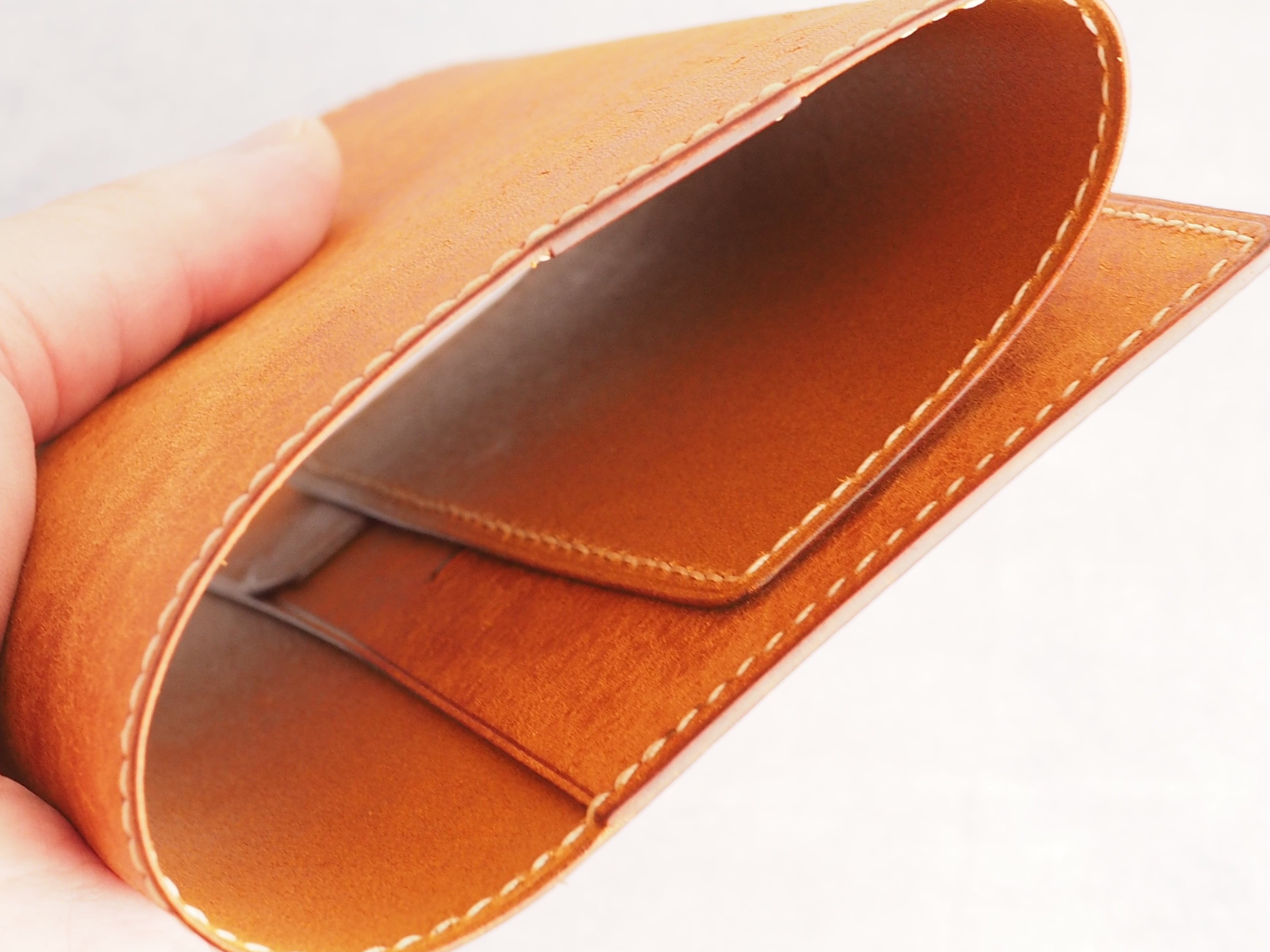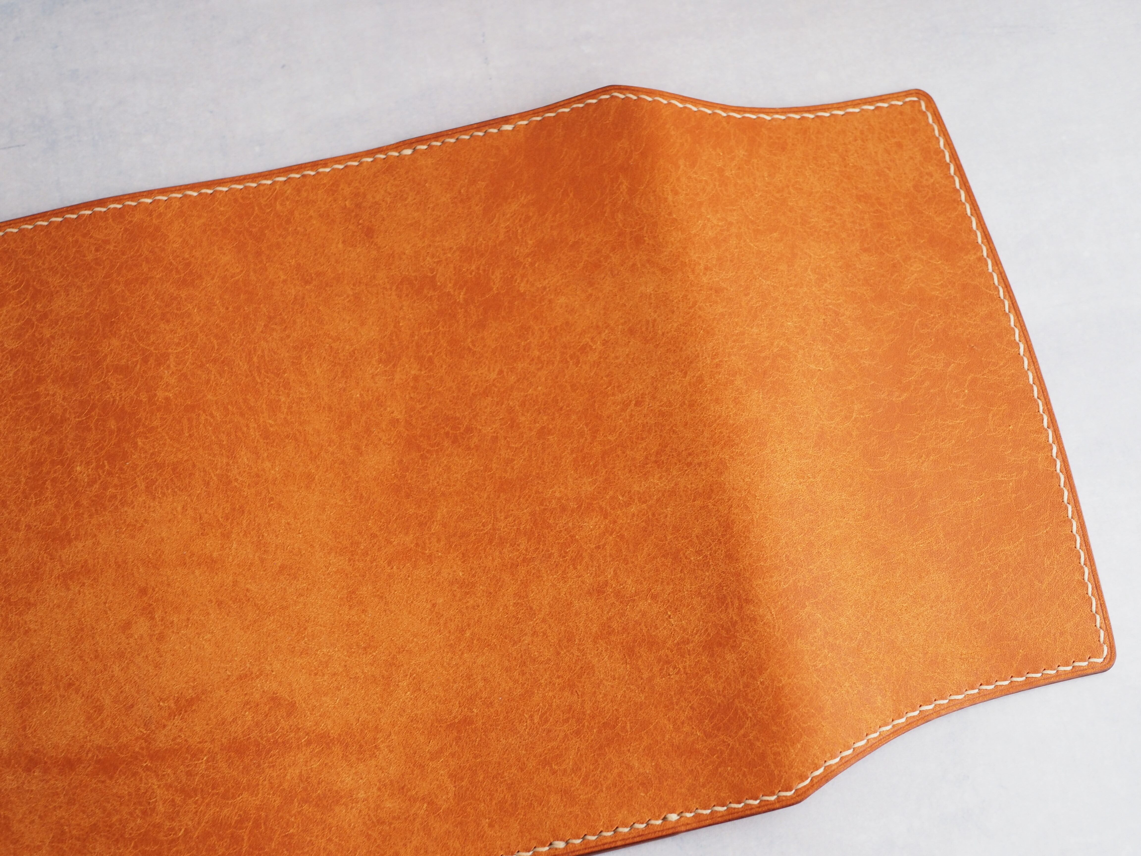 コバは植物性のロウを含む磨き剤を使い、周囲に飾り稔を施しています。手縫いで周りを一手一手縫うことで補強、伸び防止、装飾の効果があります。