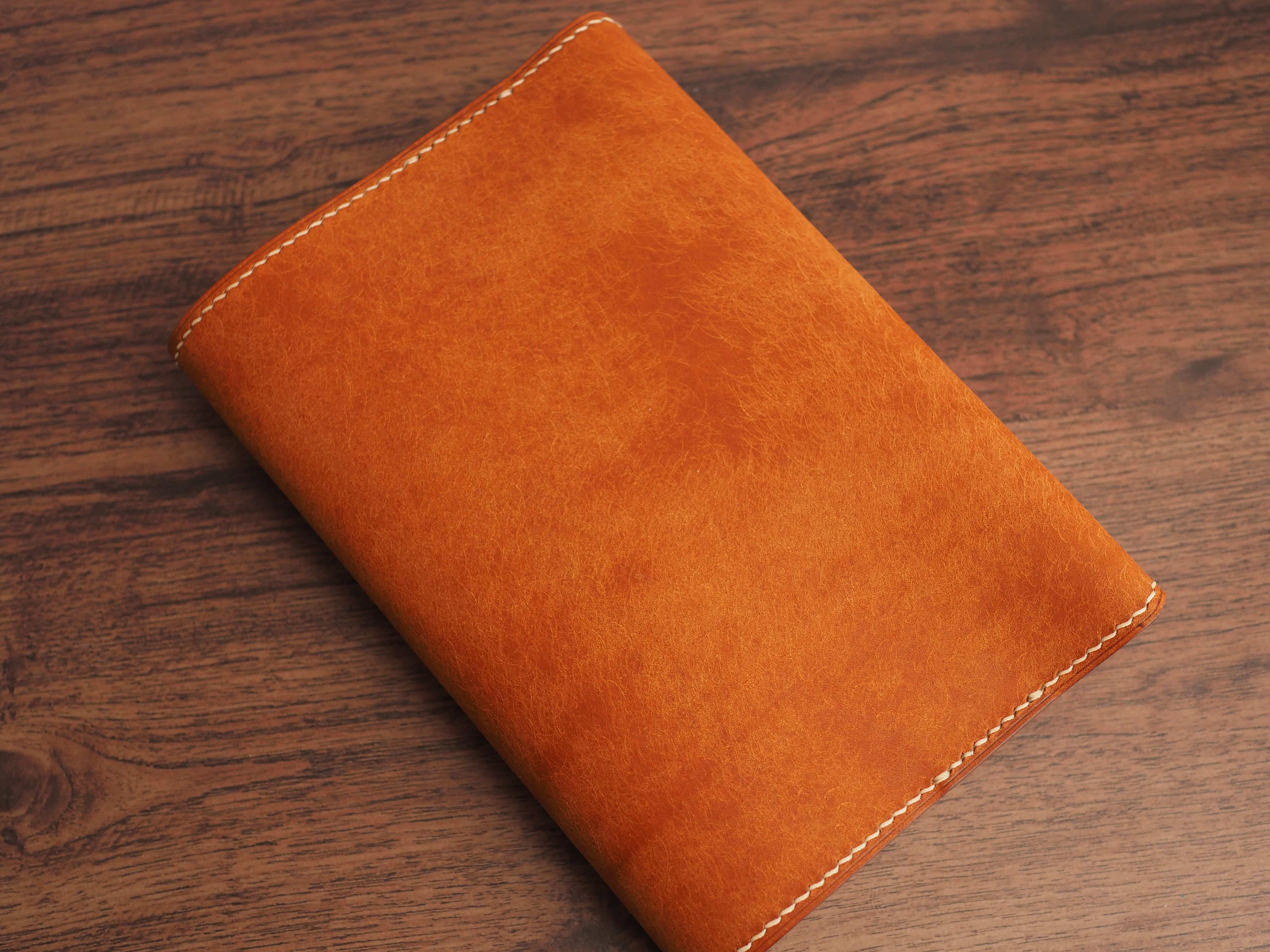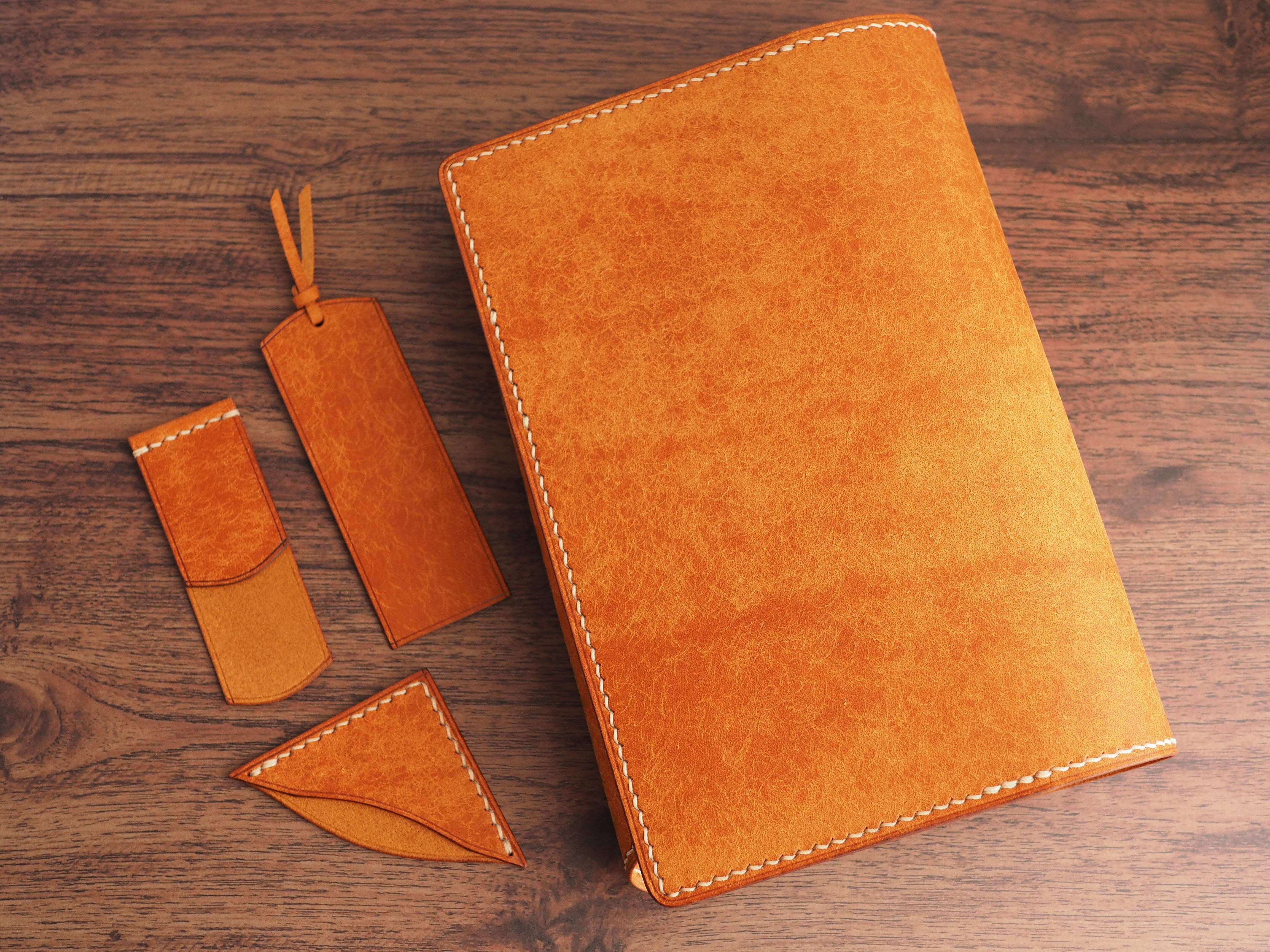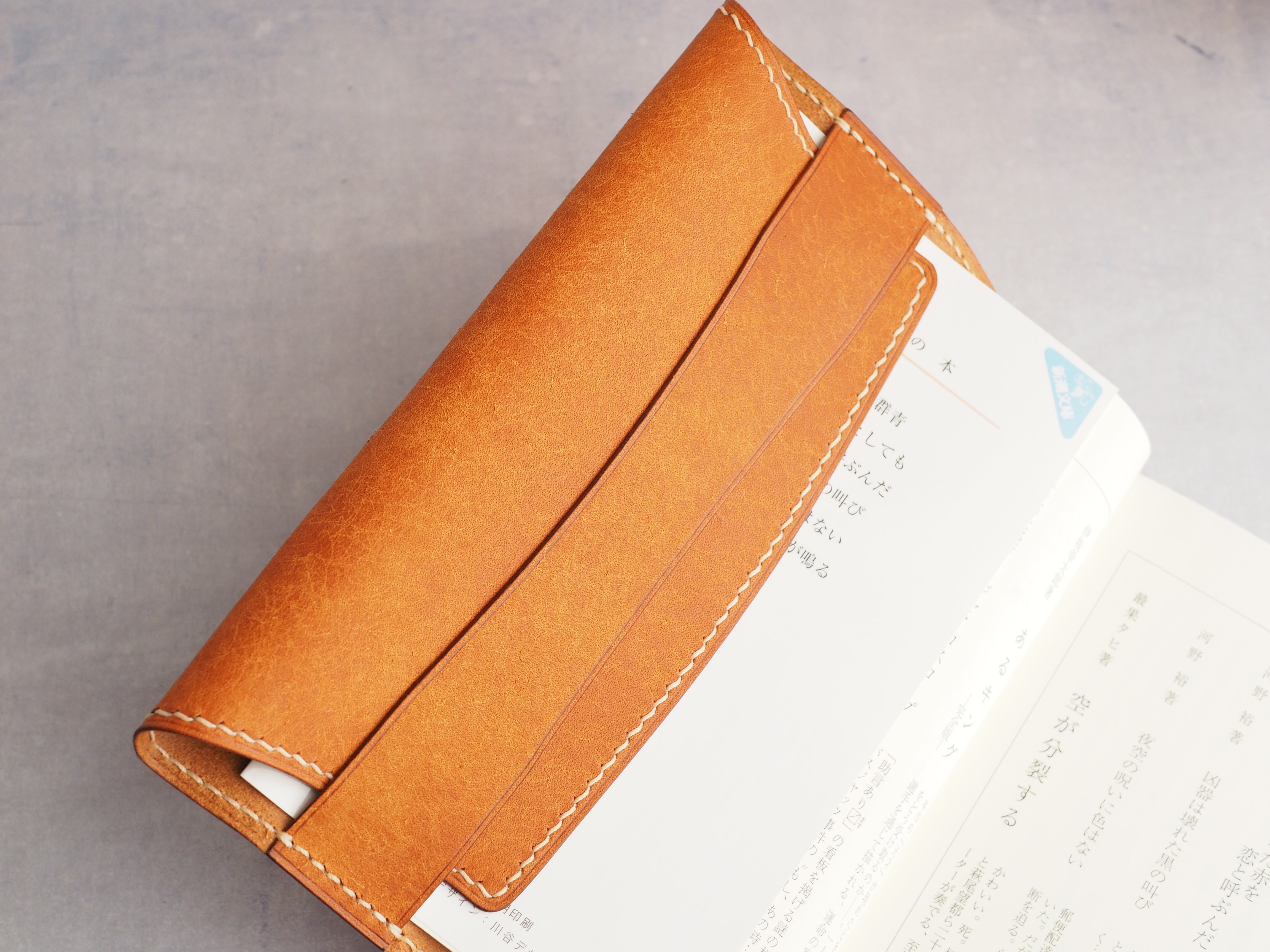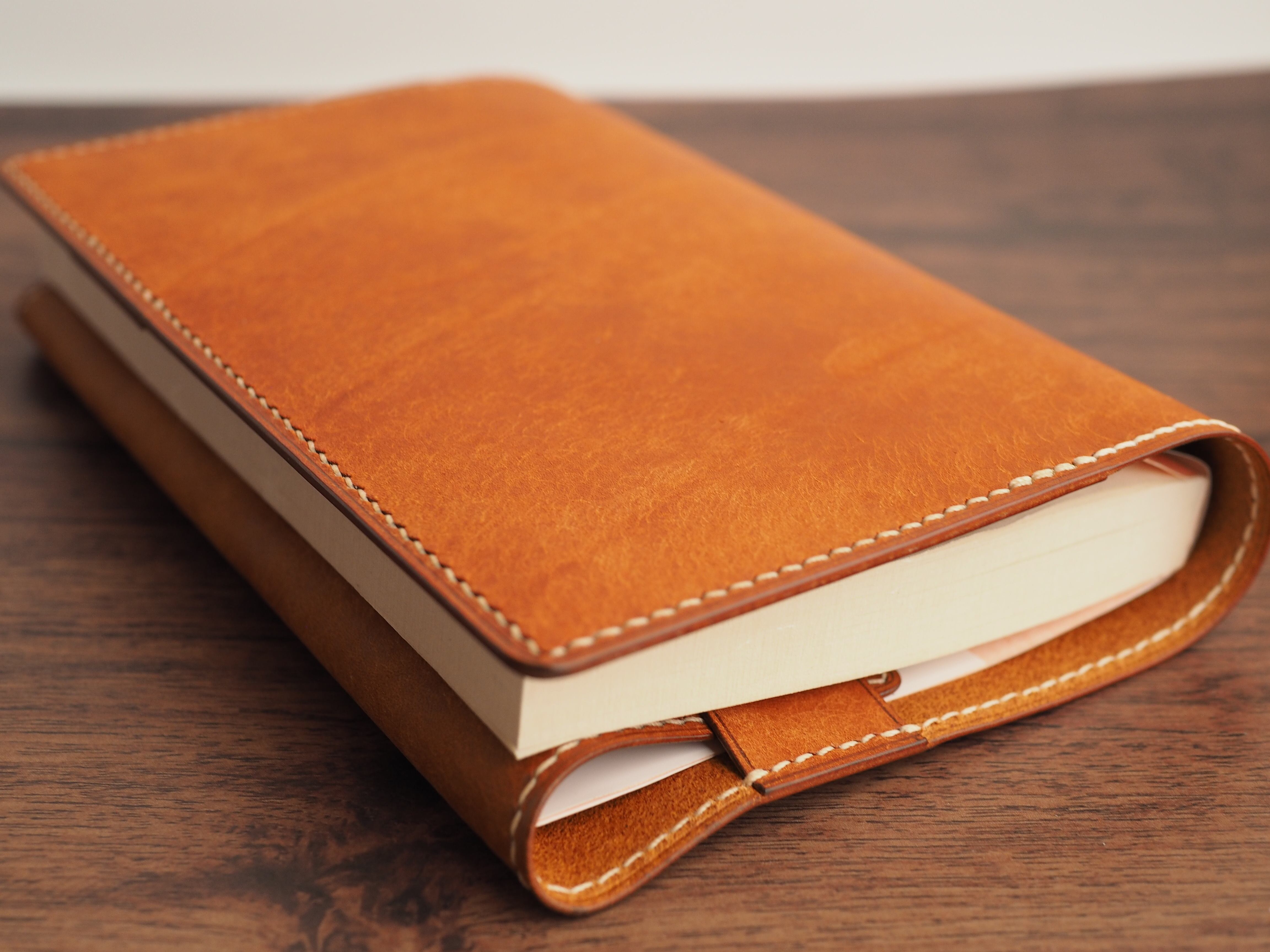 手縫い仕立ての文庫本ブックカバー│4種のしおり付き│フィエーノ(オレンジキャメル)