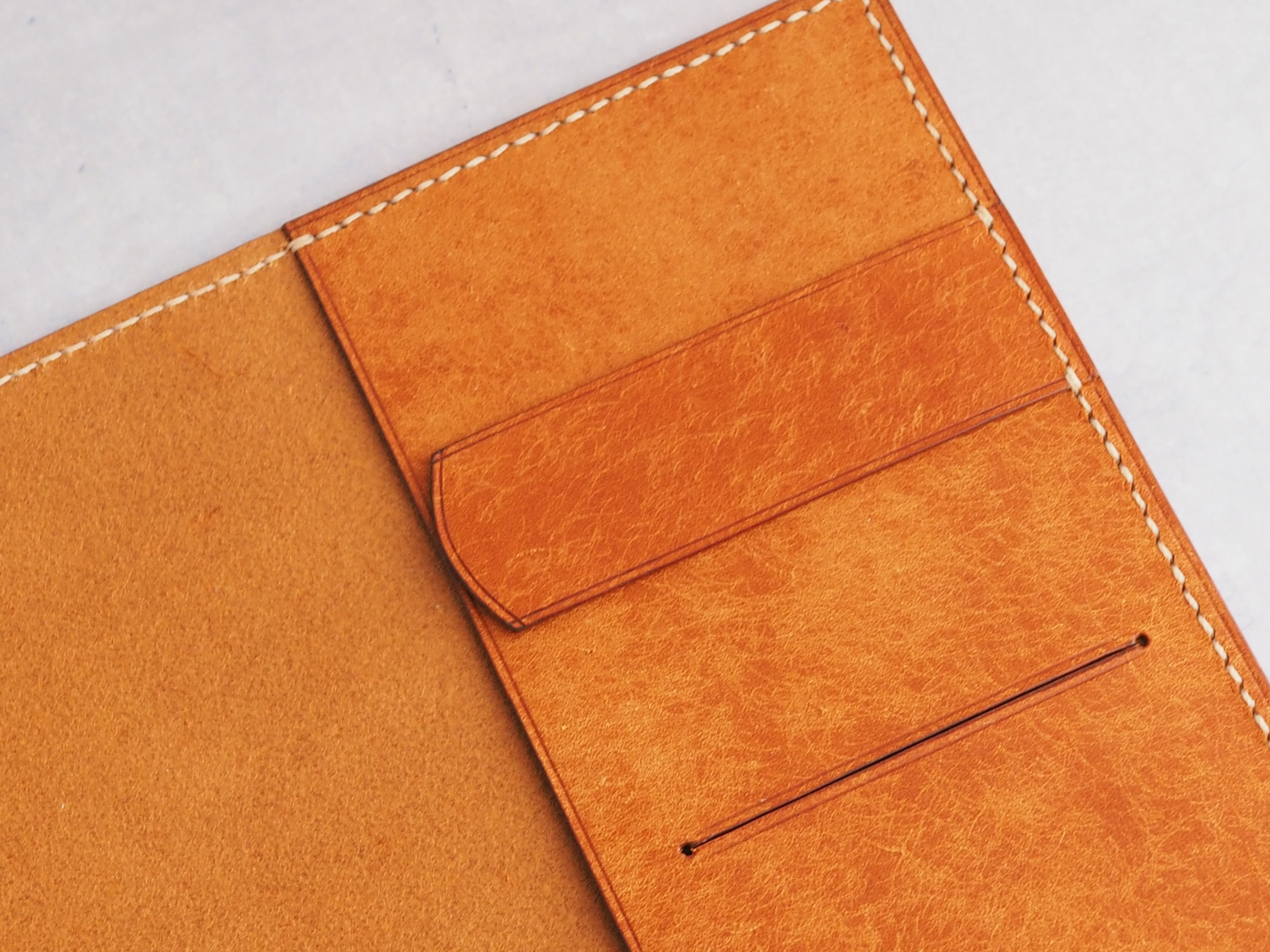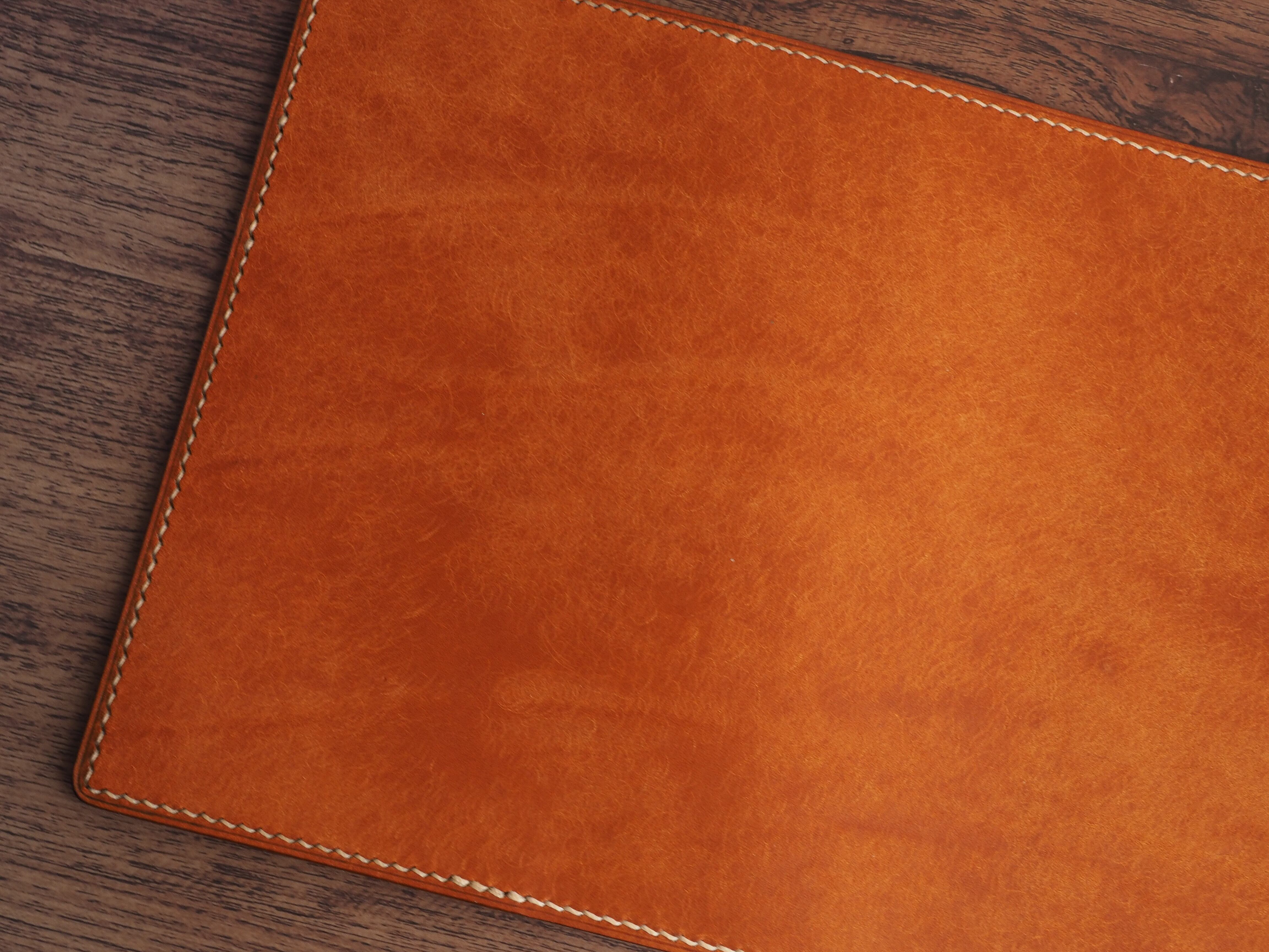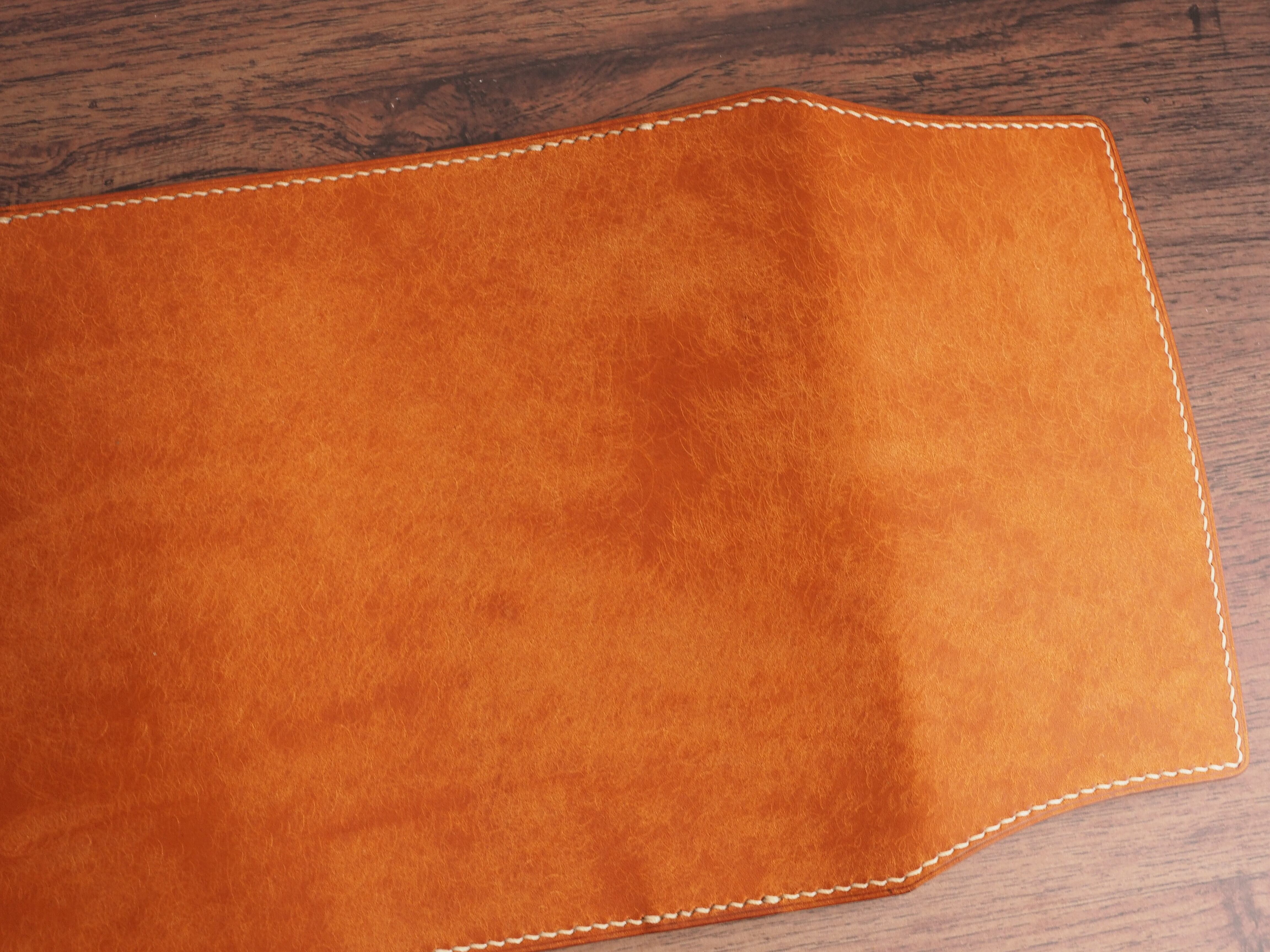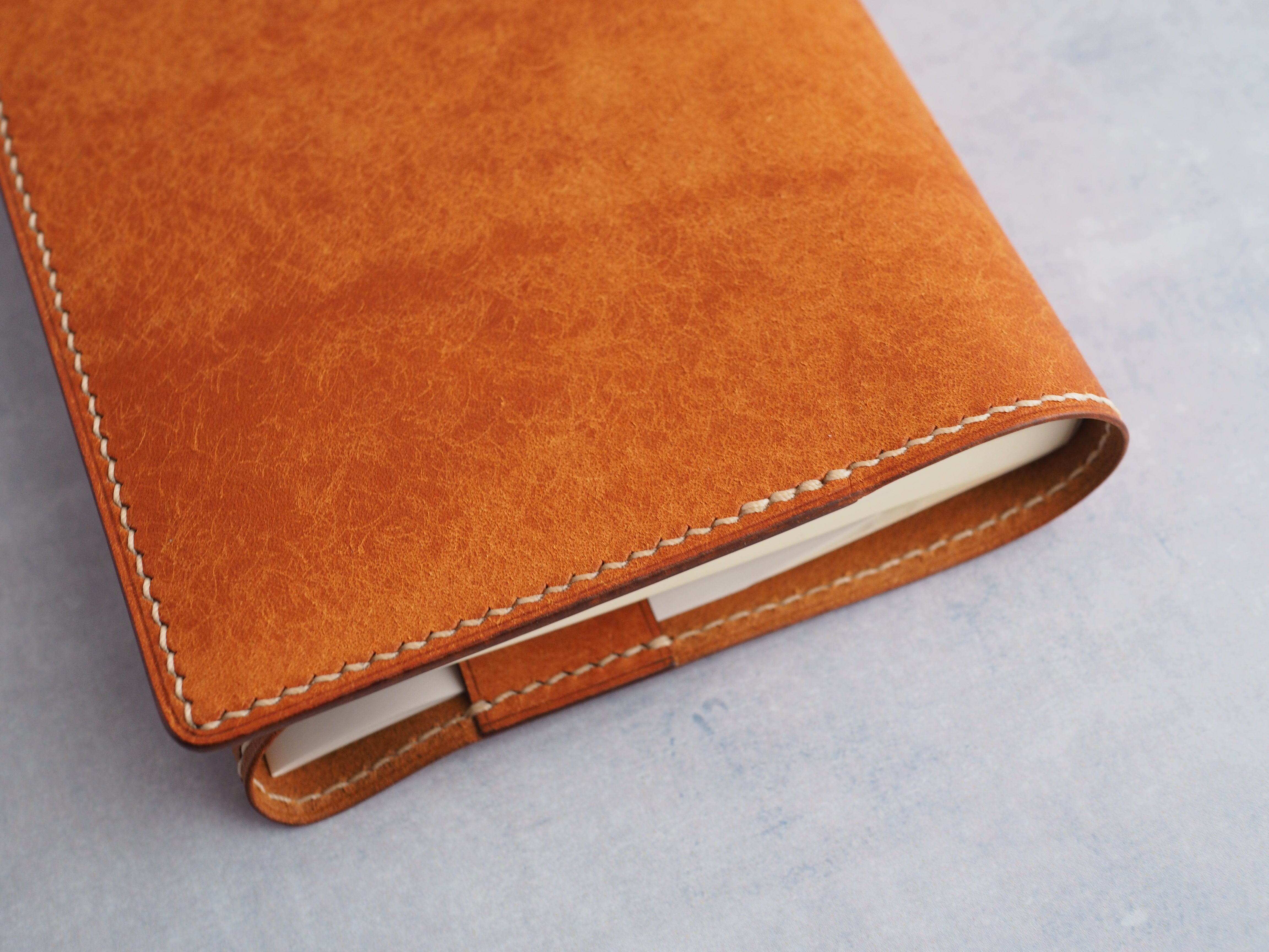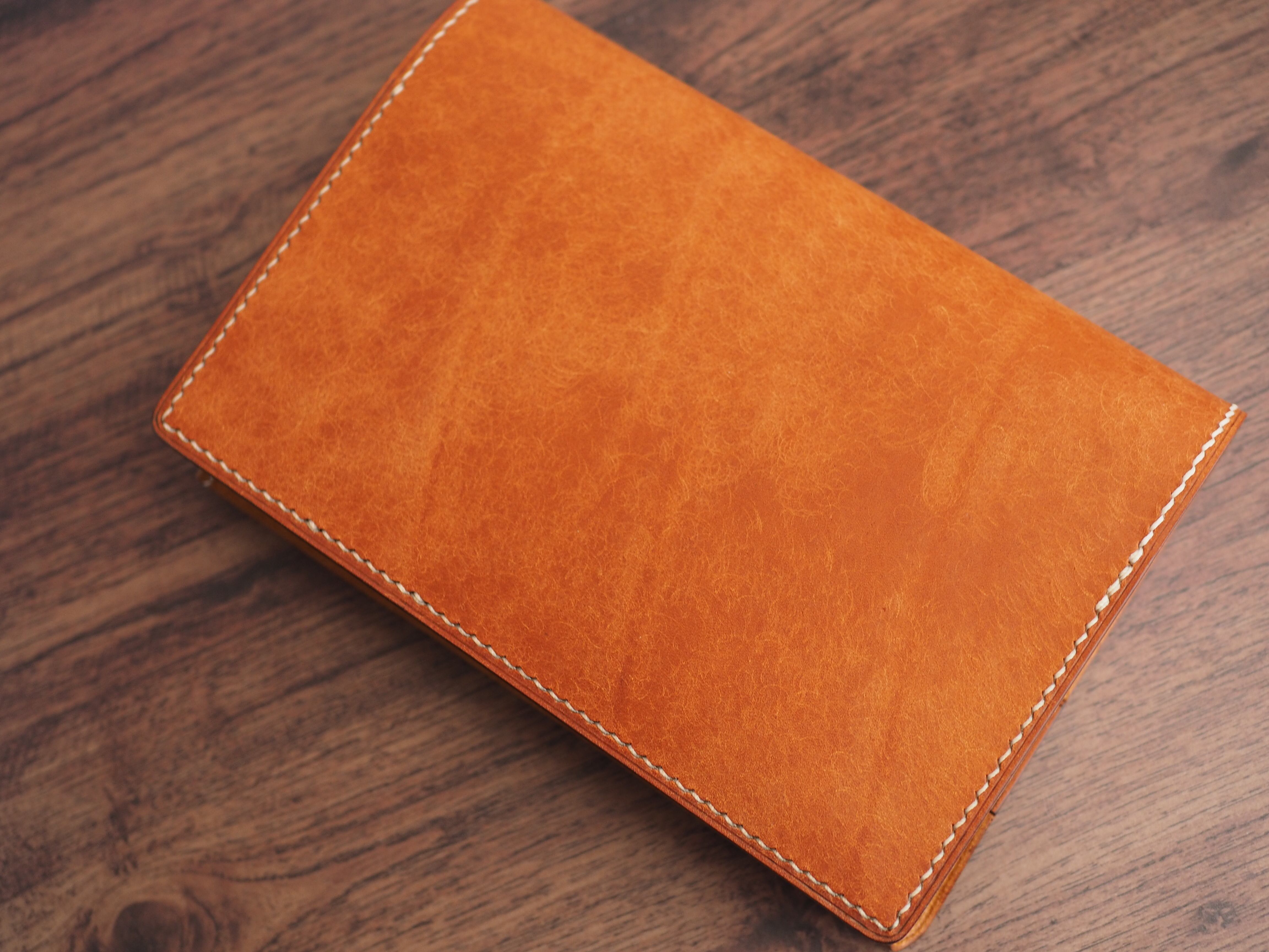 手縫い仕立ての文庫本ブックカバー│4種のしおり付き│フィエーノ(オレンジキャメル)