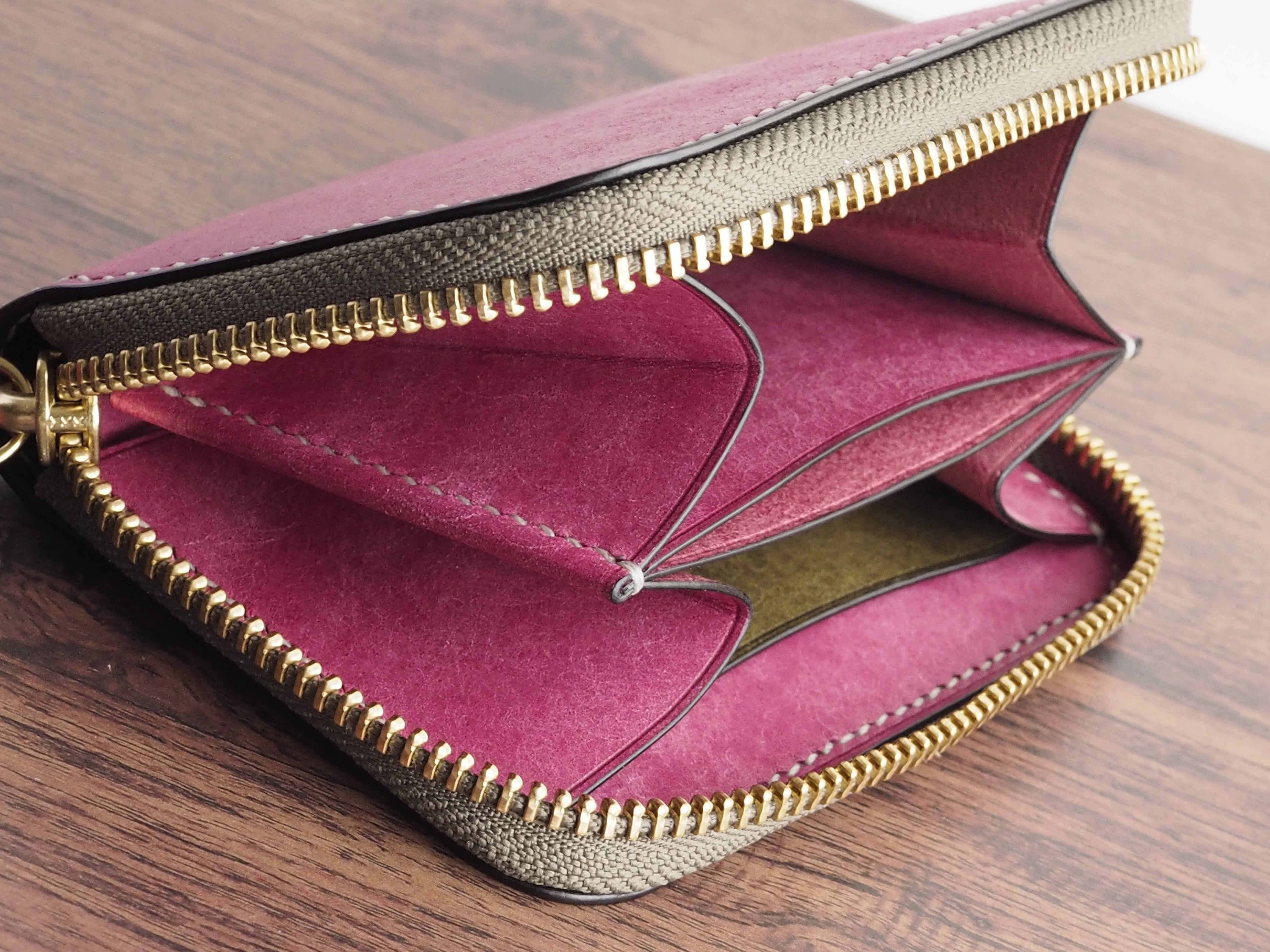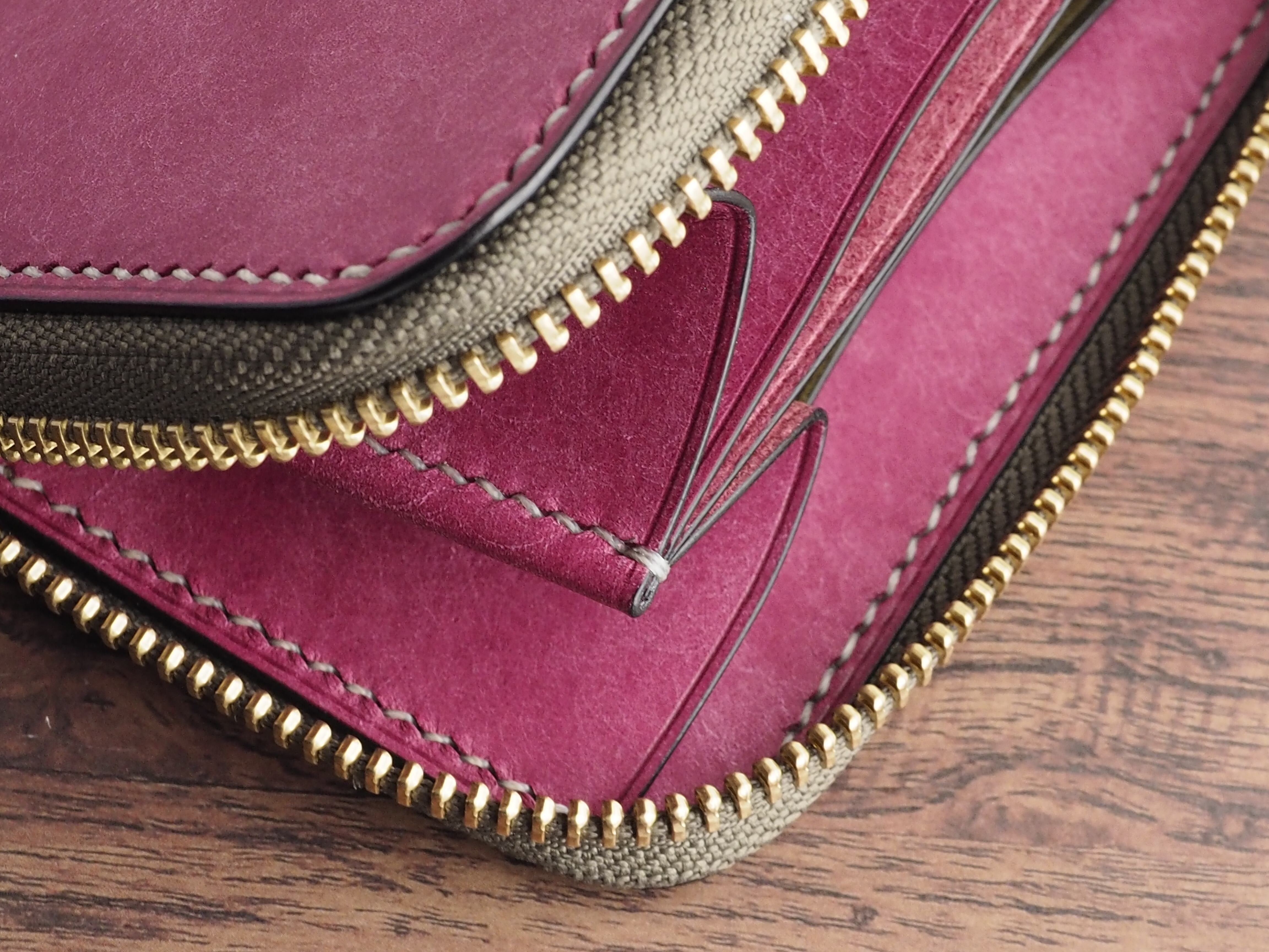 色はリラ(ライラック)とカードポケットにボスコ(オリーブ色)を使用しています。