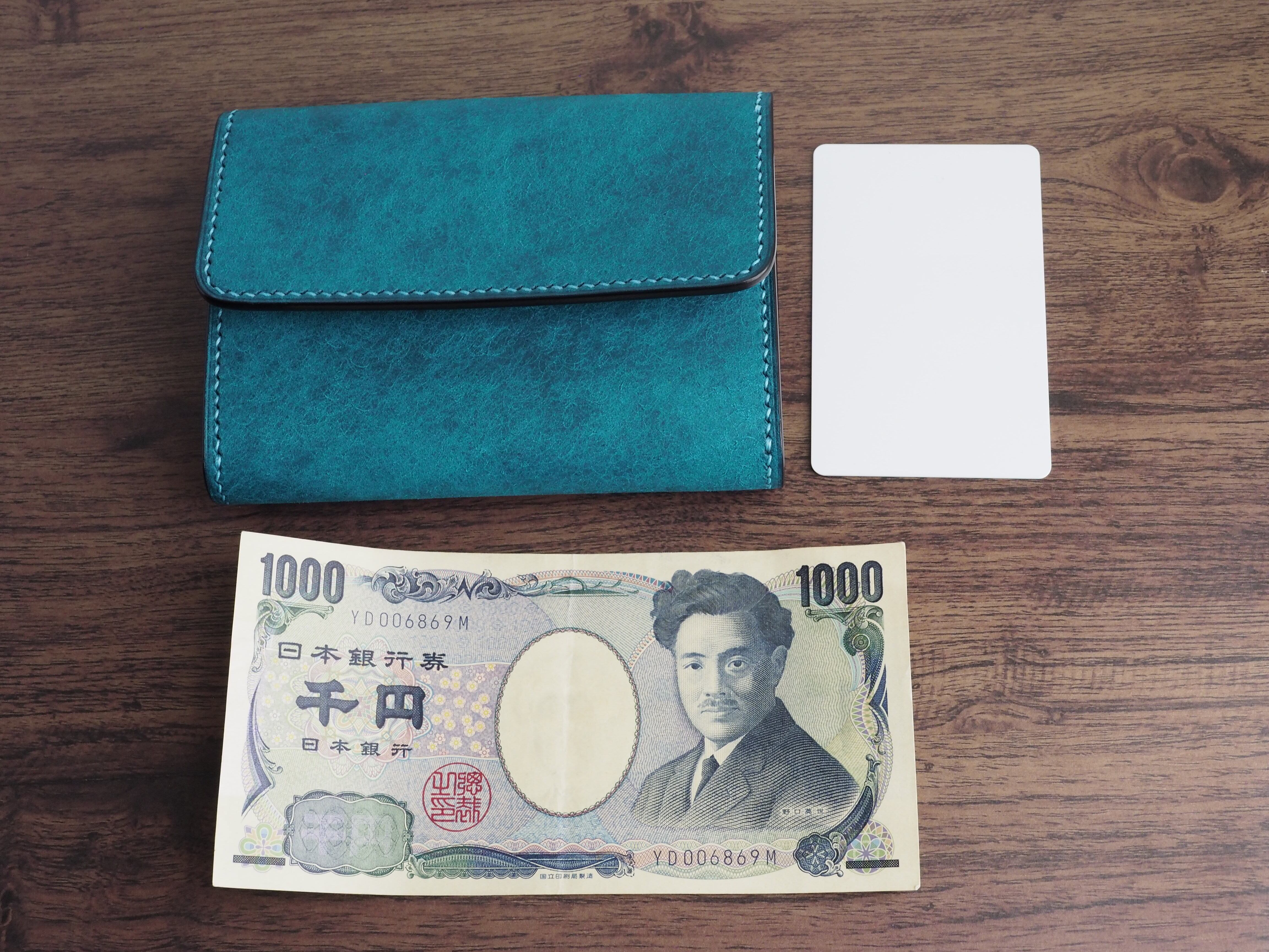 横サイズは一般的な長財布の約2/3程で、縦はほぼ同程度。長財布では大きすぎる、ミニウォレットでは小さすぎるといった方には丁度良い、絶妙なサイズです。