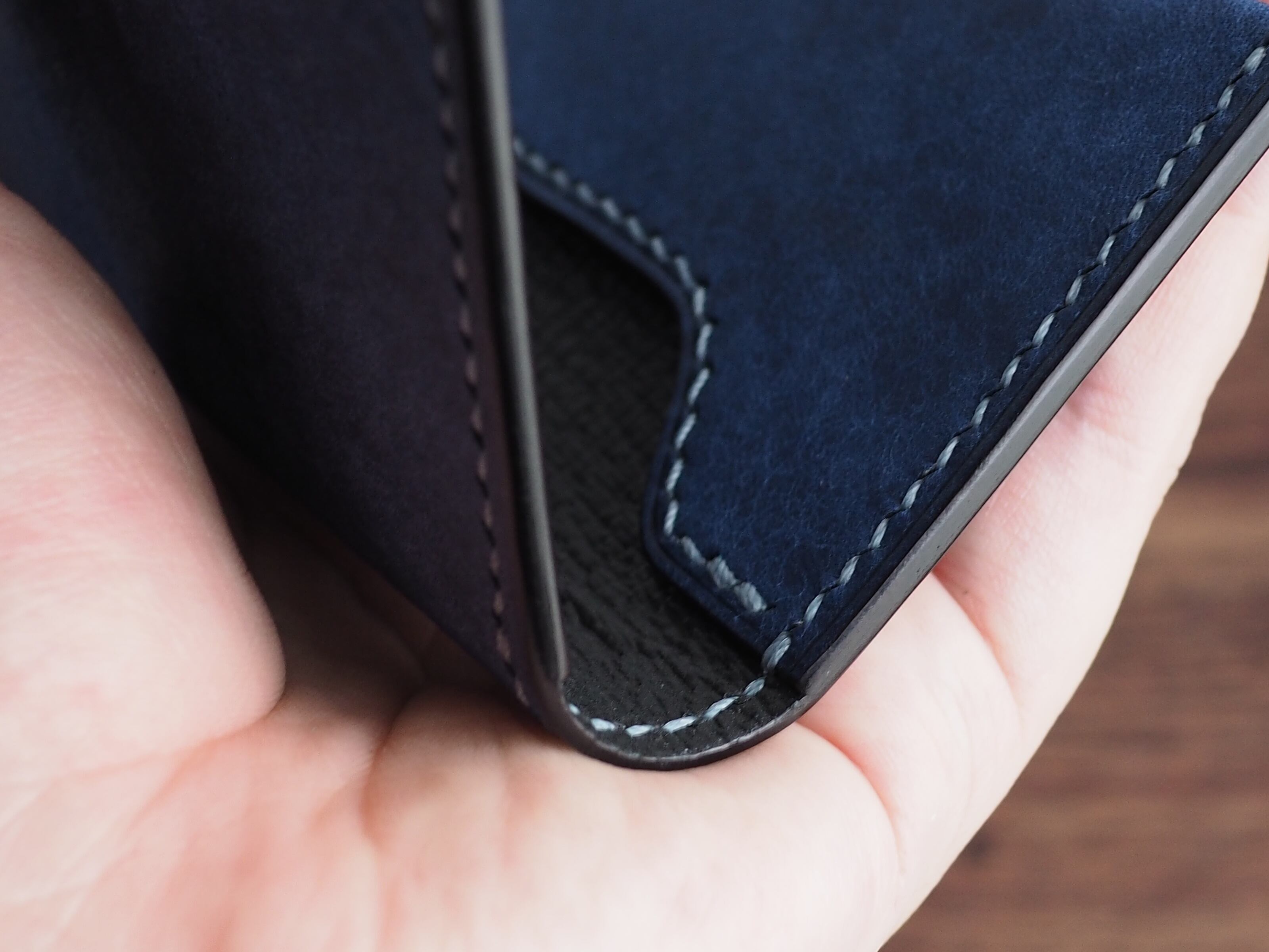 内装には、外装のコバルトと対比的なアメ豚ソフトの黒を採用しました。このバイカラーは、開くたびに個性を際立たせます。