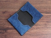 【手縫い総裏張り】マルゴー革&アメ豚 二つ折りスリムカードケース /コバルト
