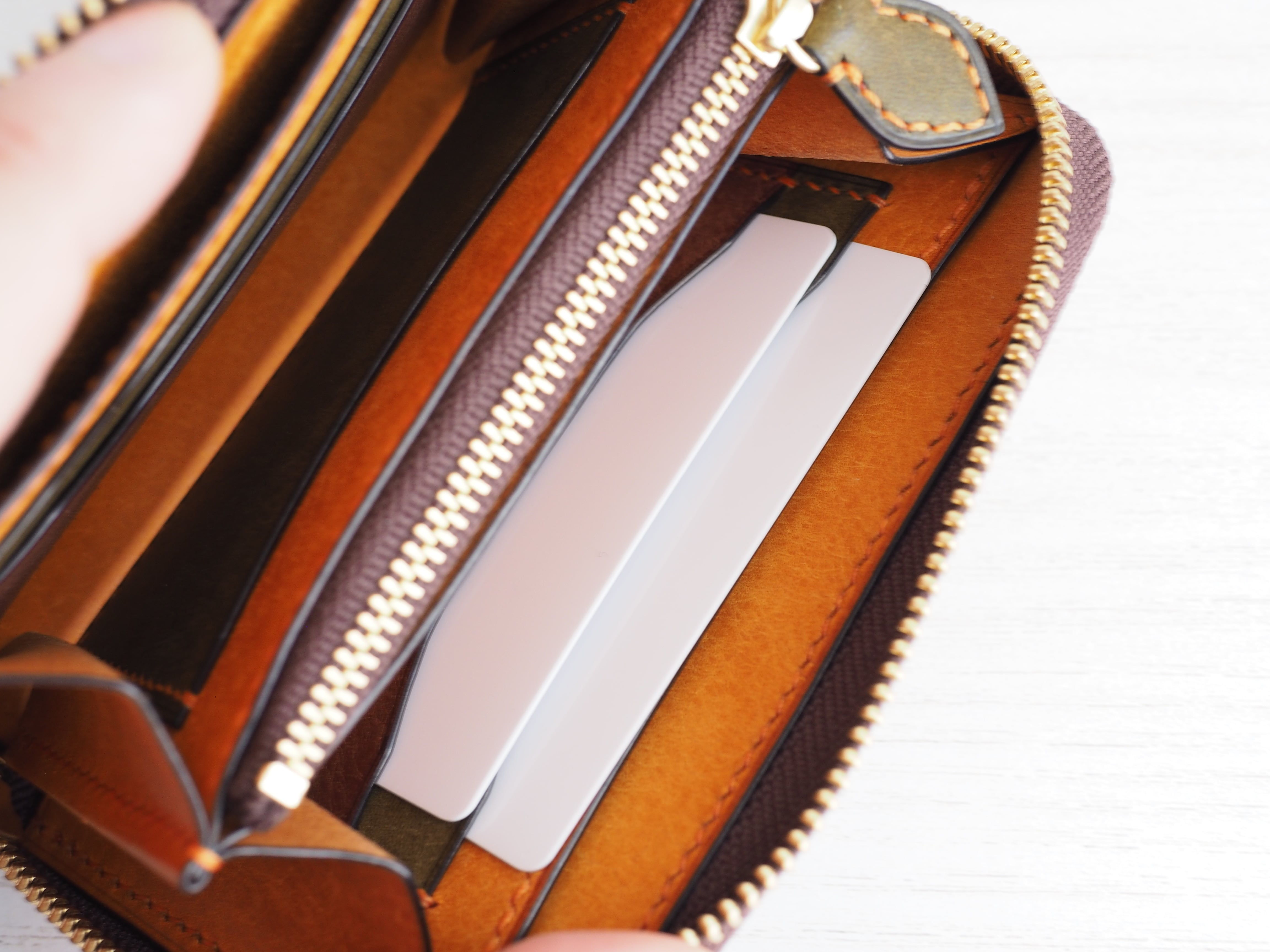 横サイズは一般的な長財布の約2/3程で、縦はほぼ同程度。長財布では大きすぎる、ミニウォレットでは小さすぎるといった方には丁度良い、絶妙なサイズです。