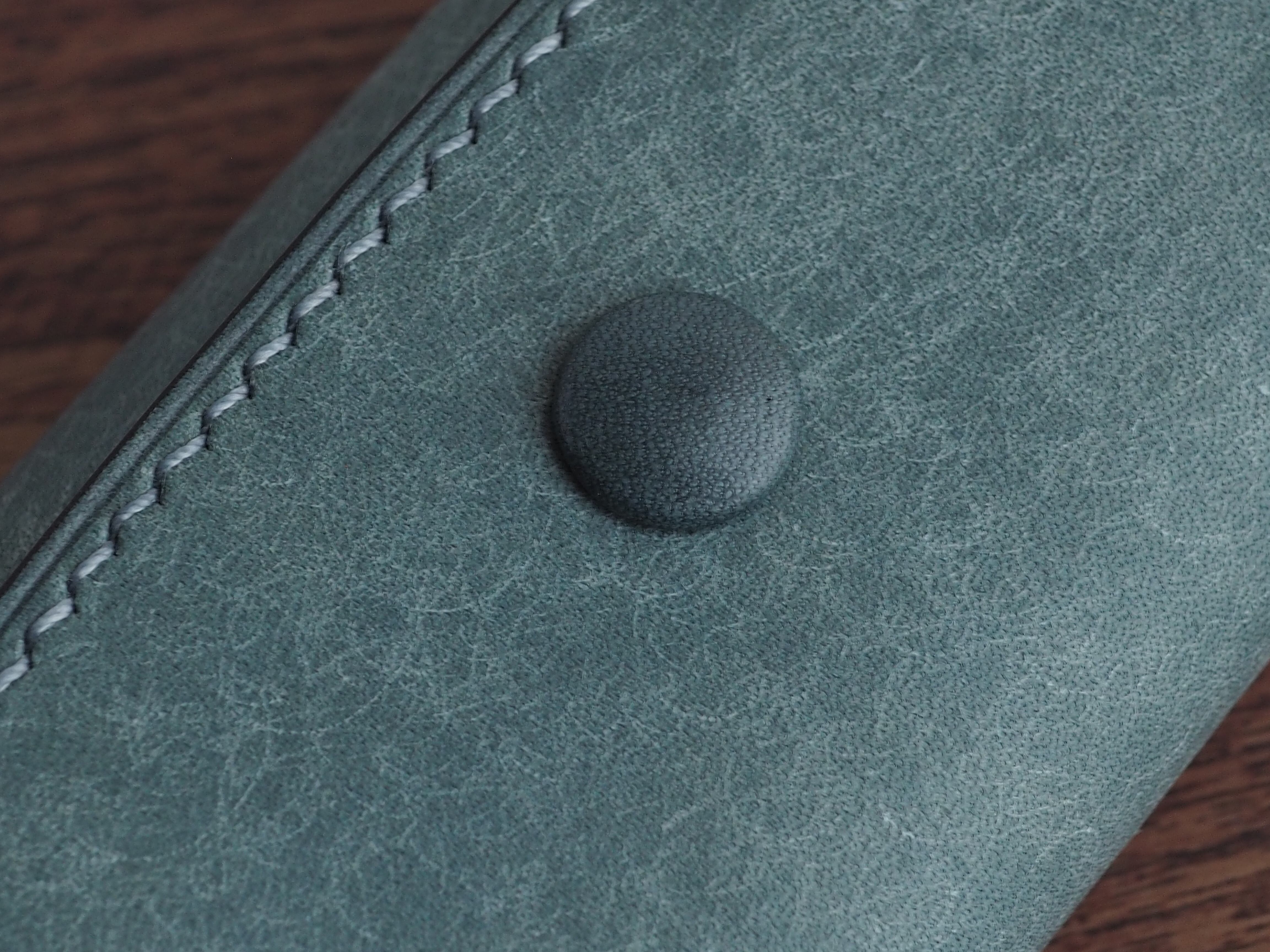 ・金具はすべて真鍮製のものを使用、ホックの頭は手作業で加工した同種の革でくるんでいます。