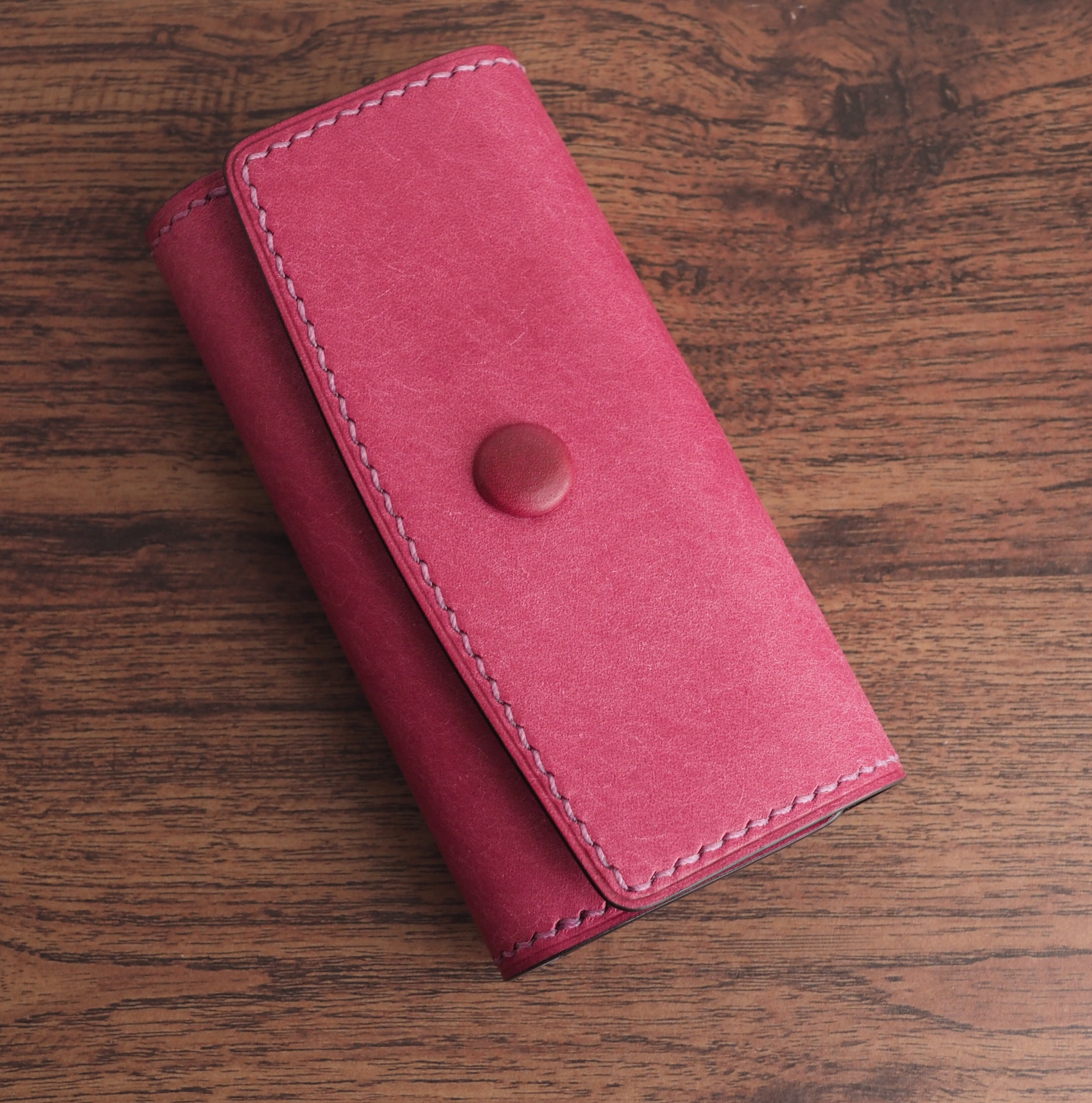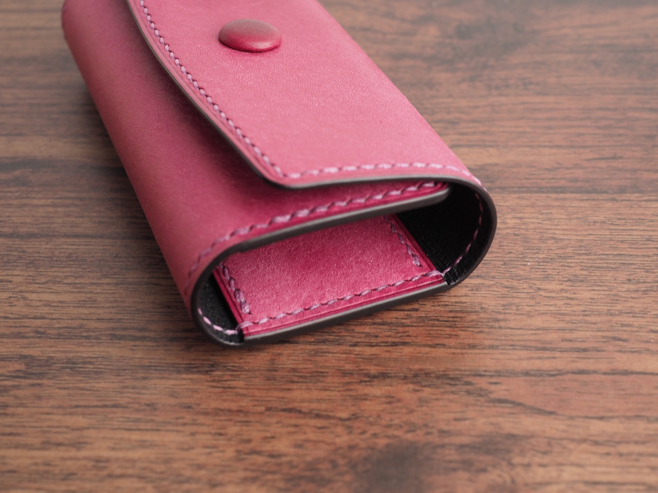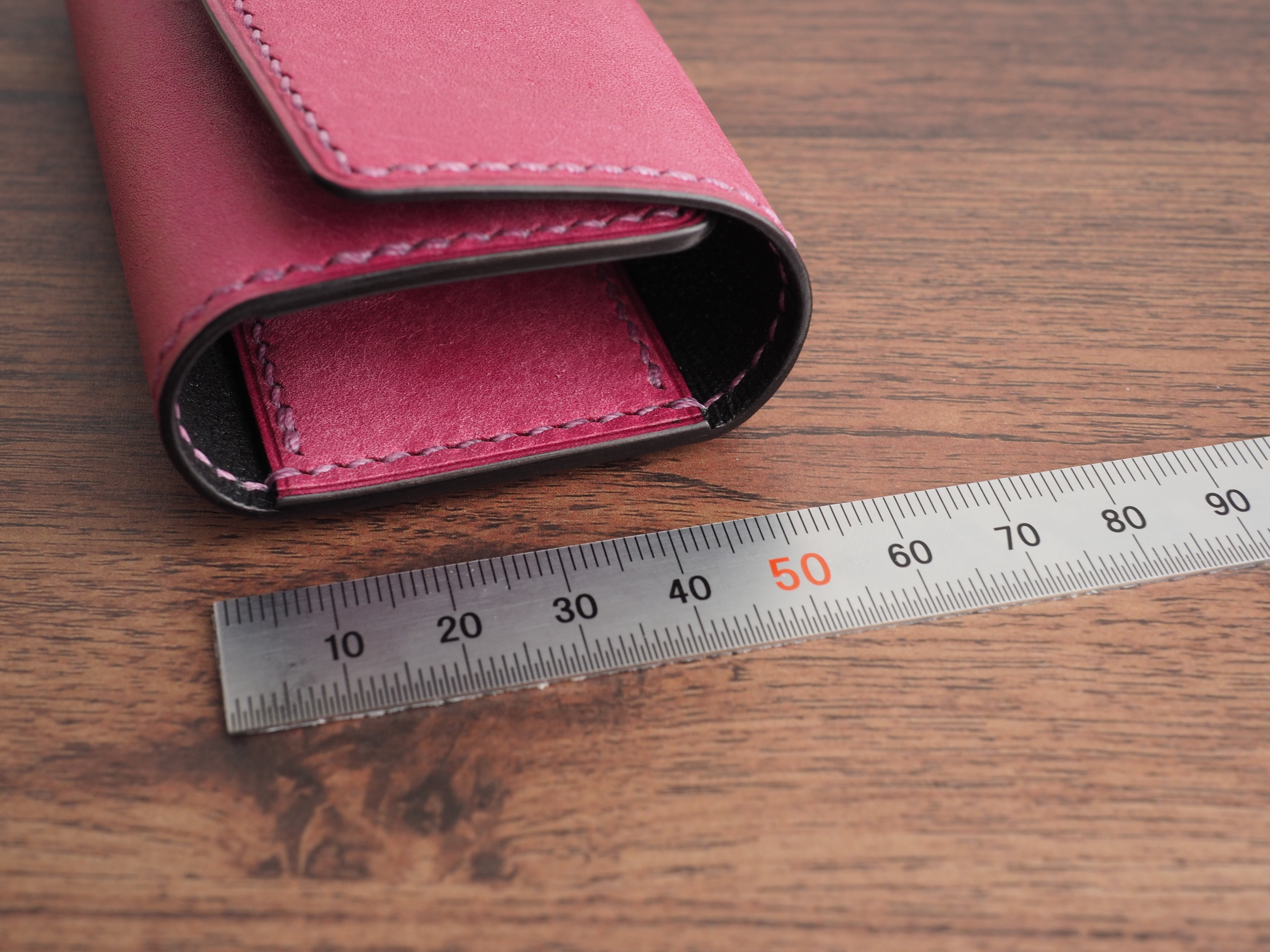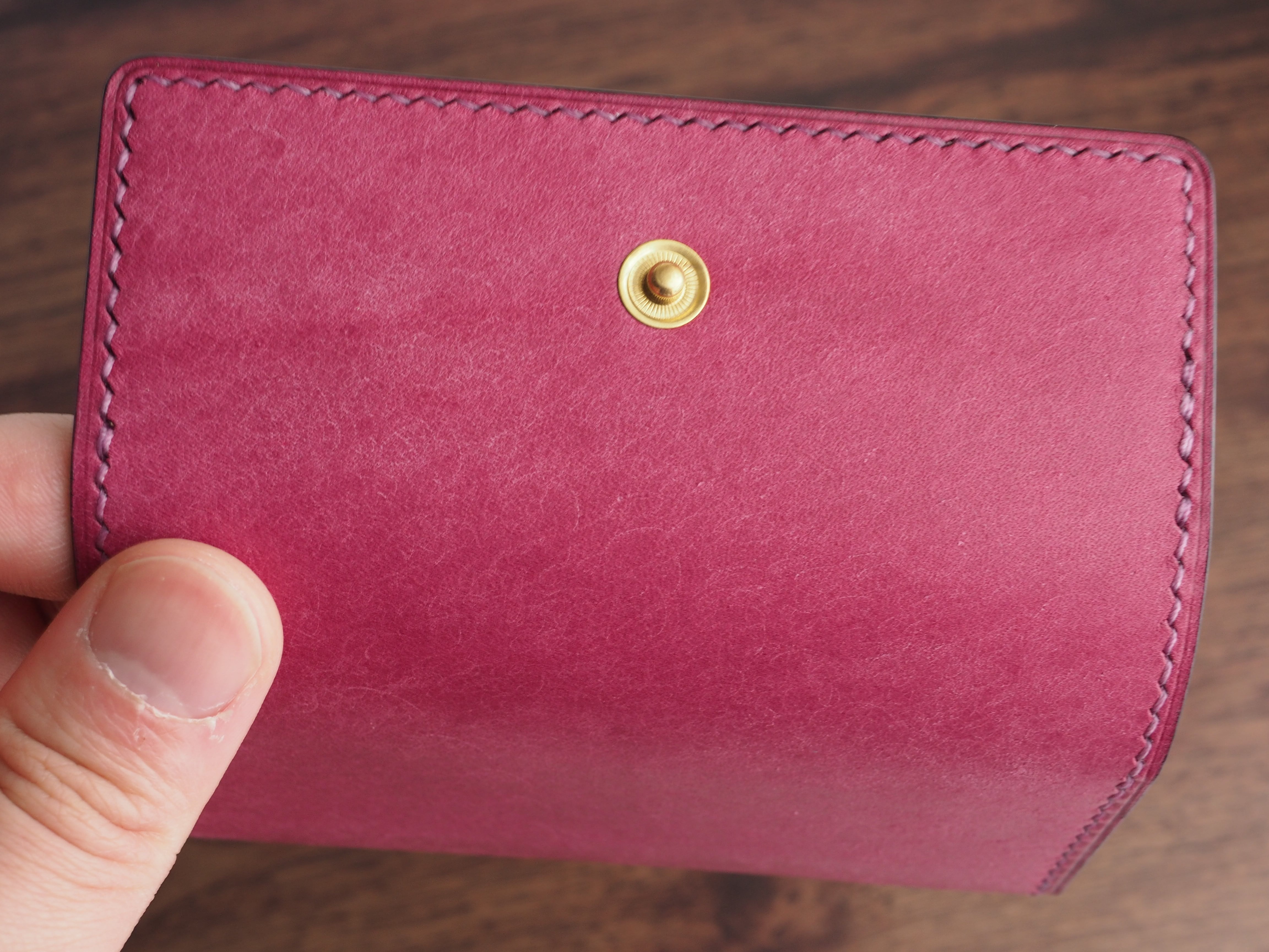 ・コバは染色後、仕上げ剤と蜜蝋を熱で溶かし込み磨き上げています。コバの仕上げには時間をかけているのでぜひご確認下さい。
