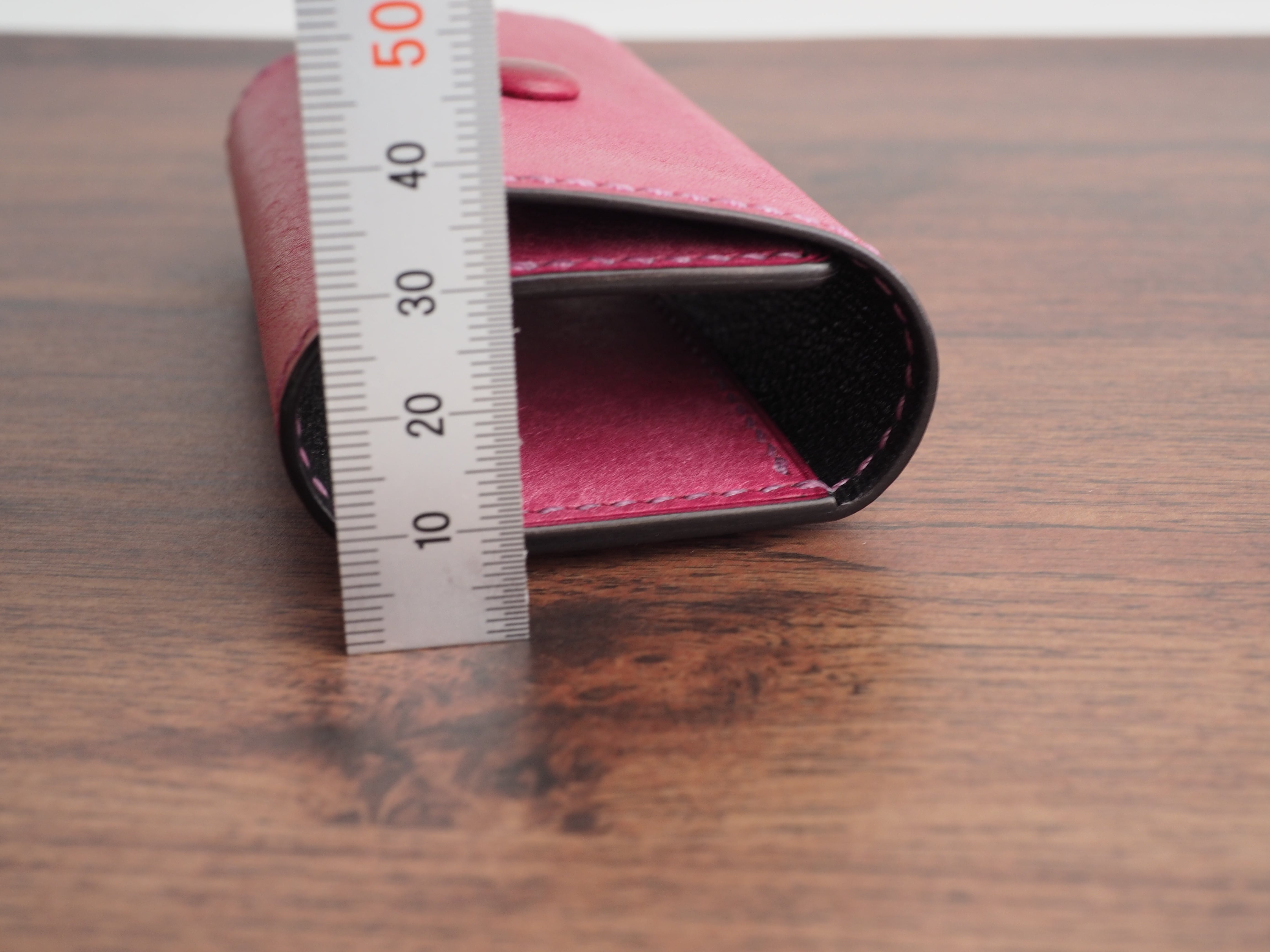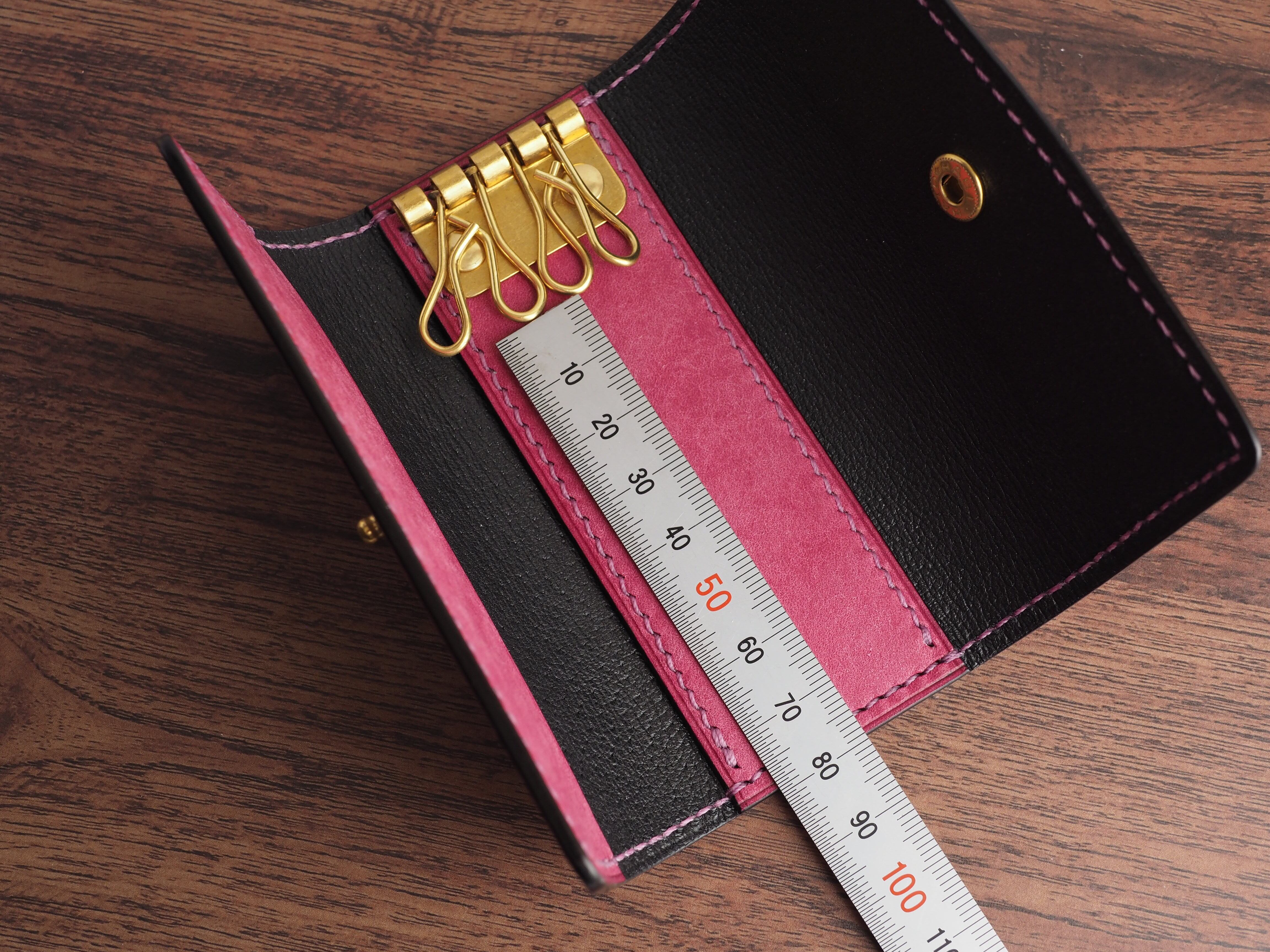 ・内側の全周はおよそ13㎝ほどで、お手持ちの鍵の厚みがこの範囲に収まれば収納可能です。