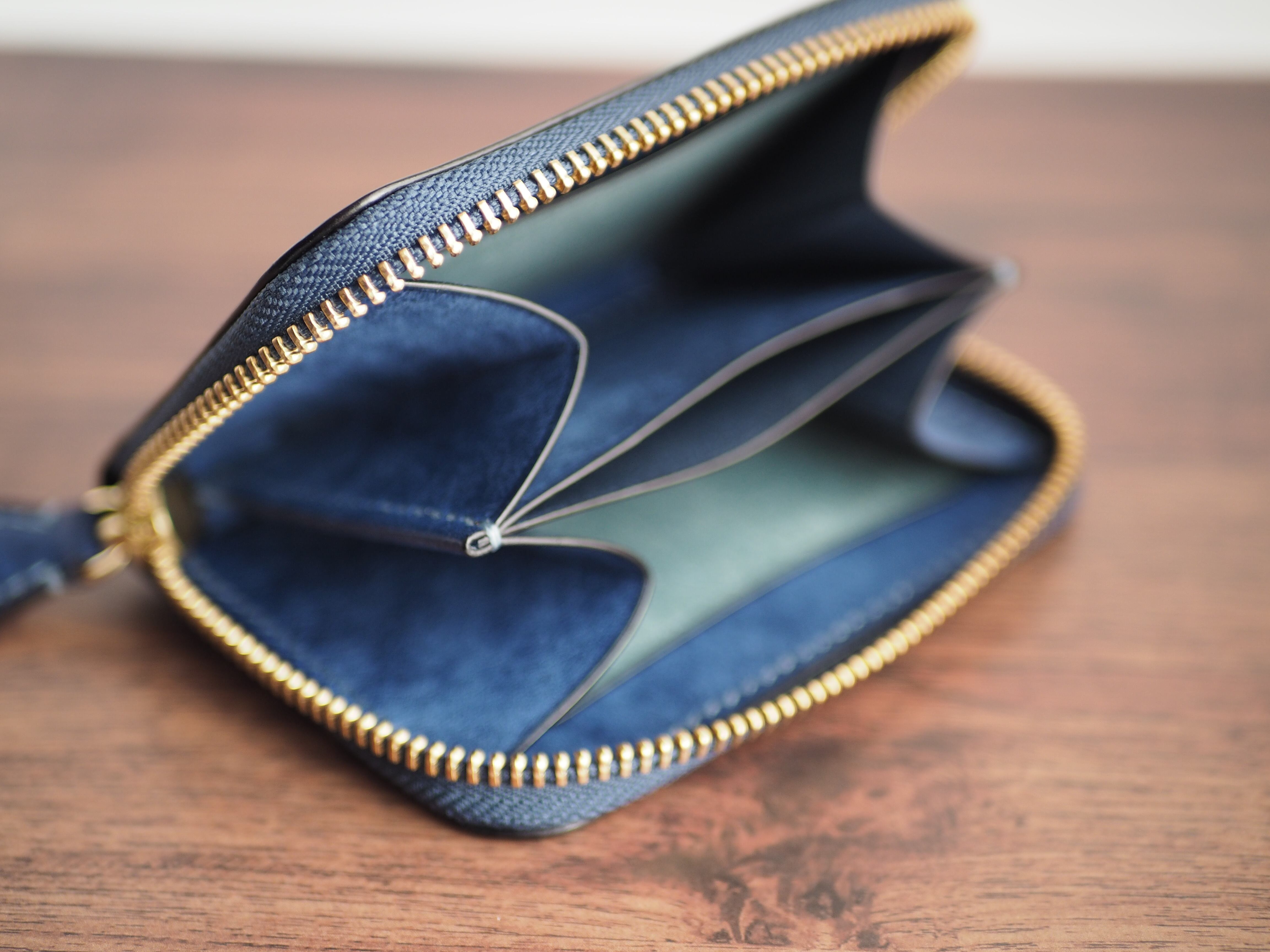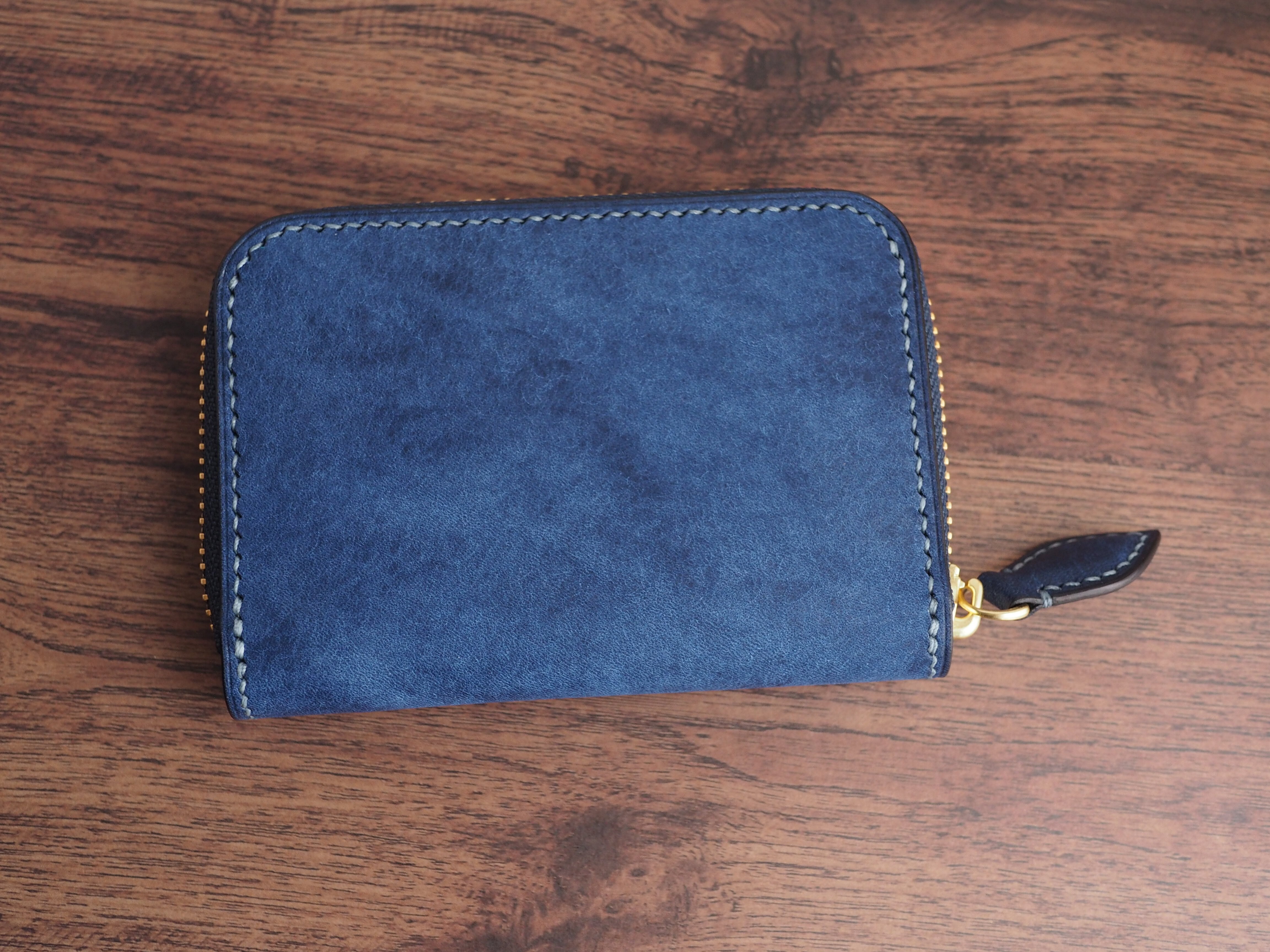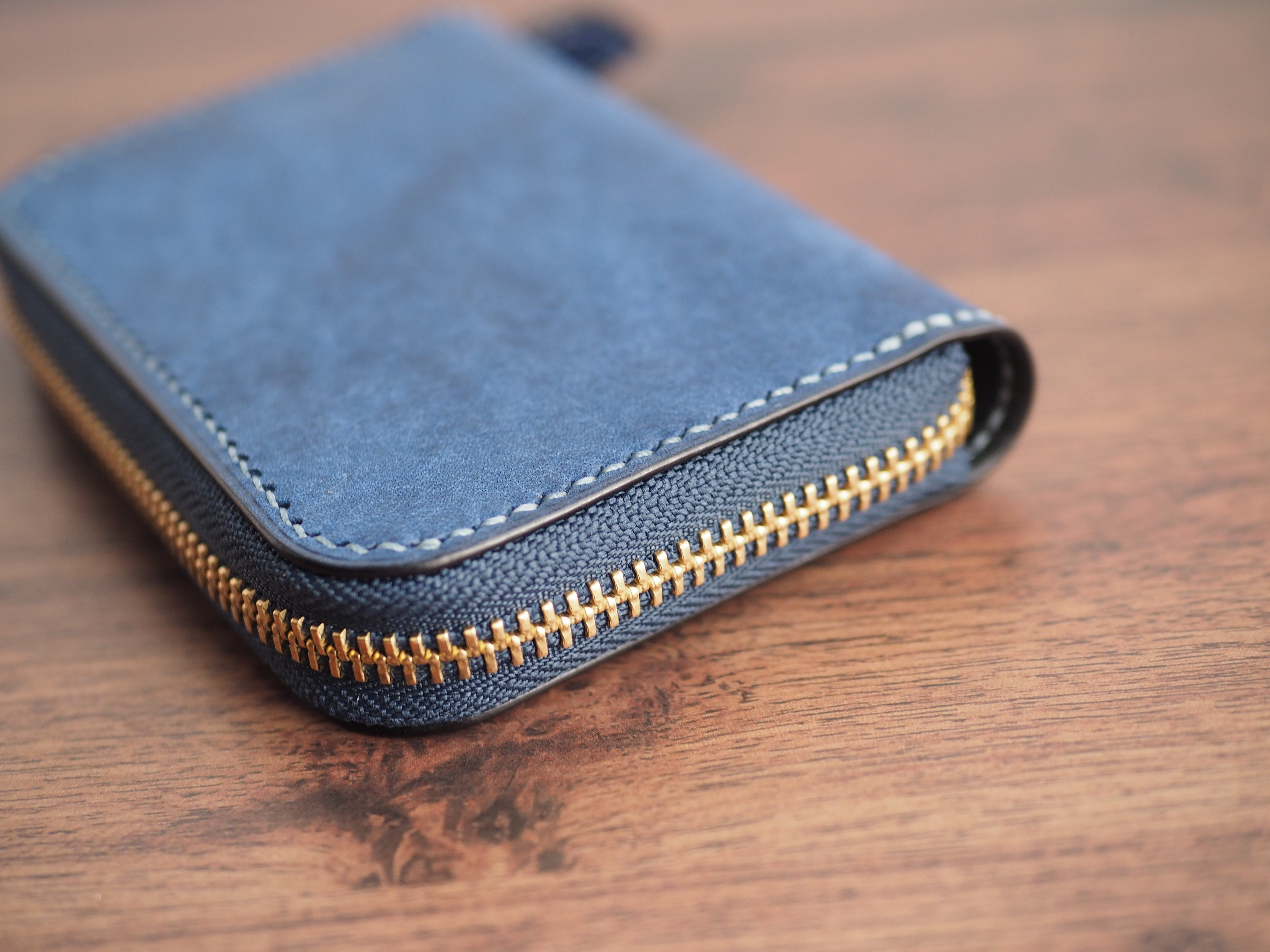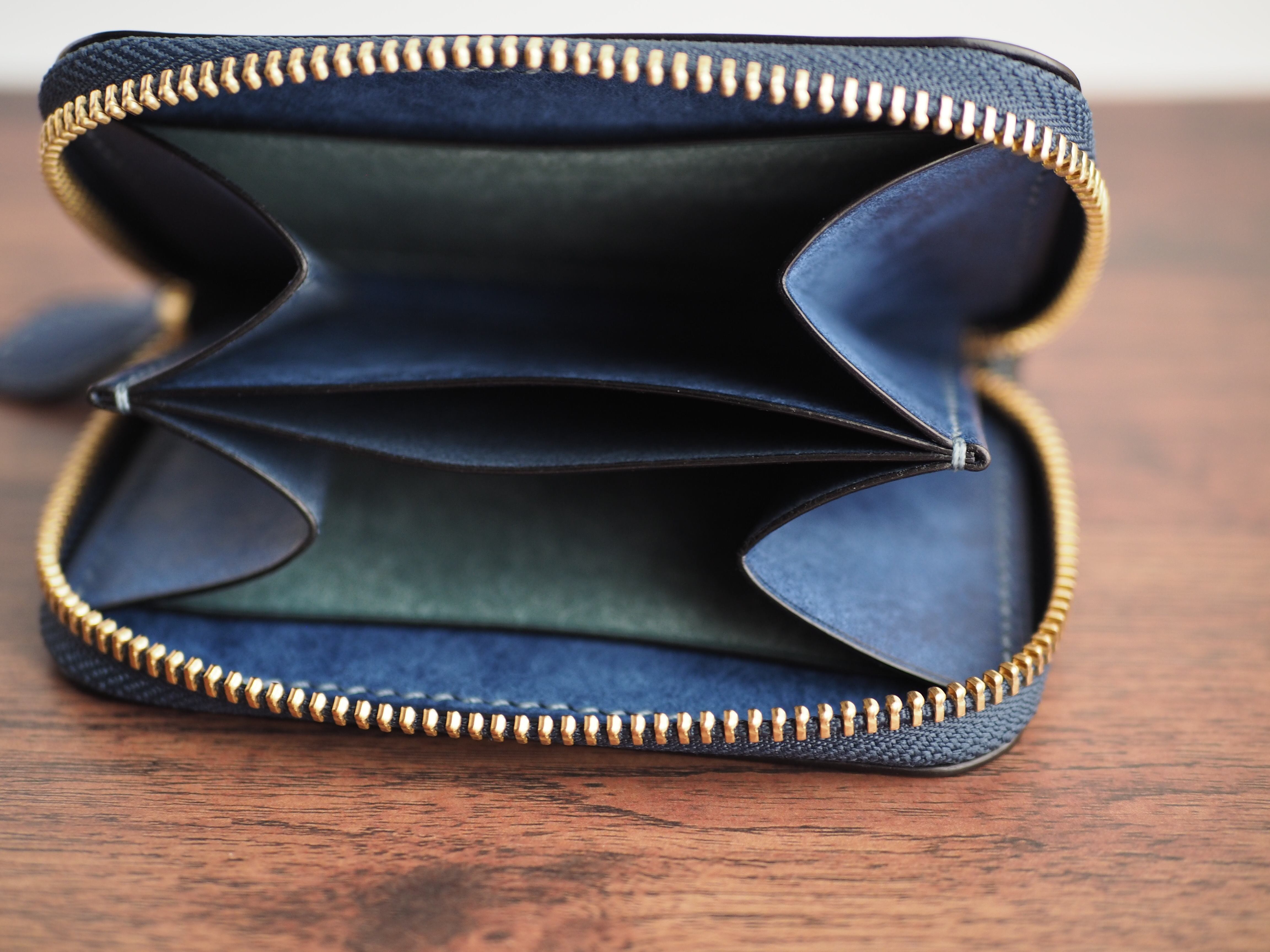 総手縫い│マルゴー│ラウンドファスナーのミニ財布│コバルト×アヴィオ