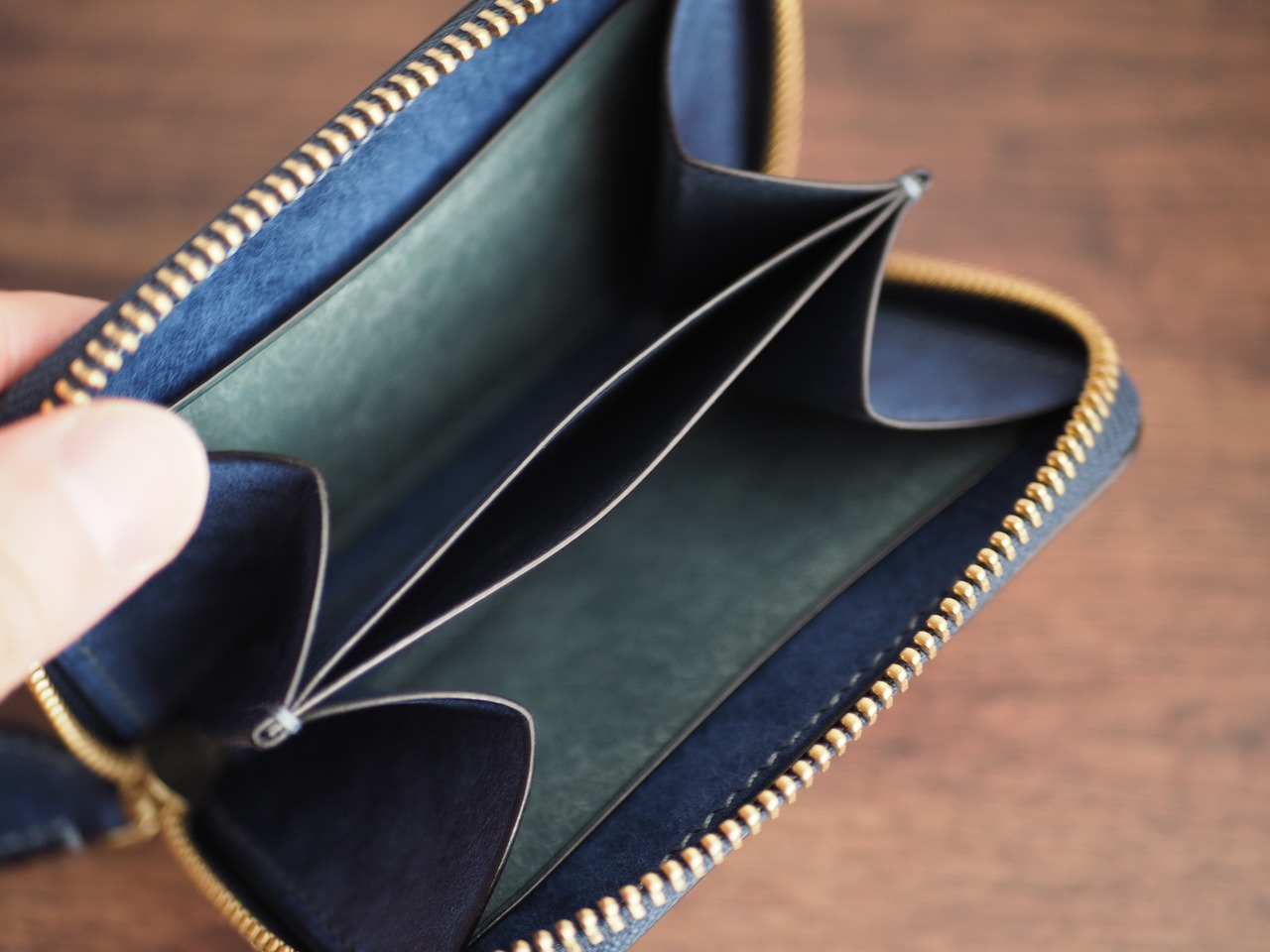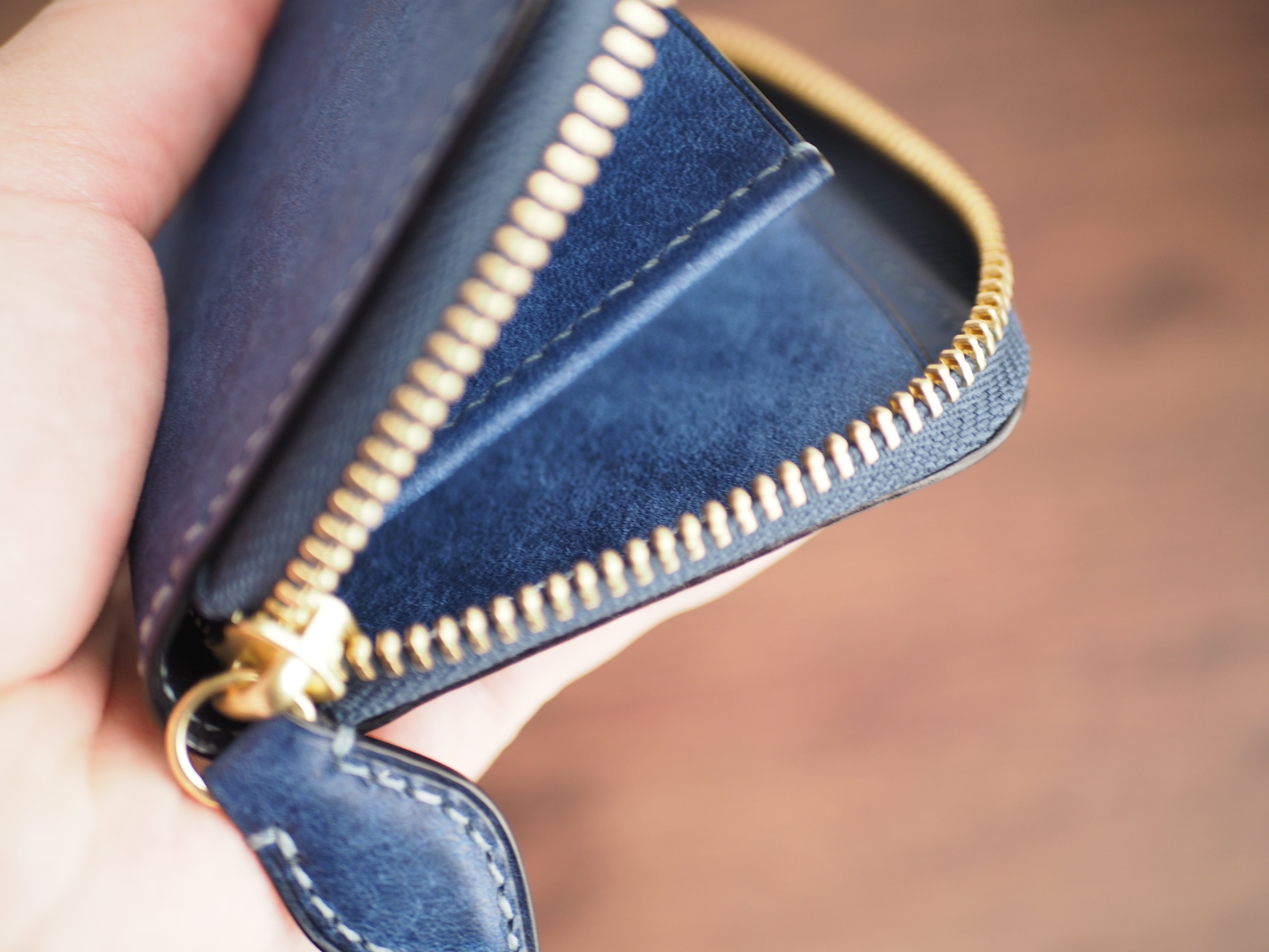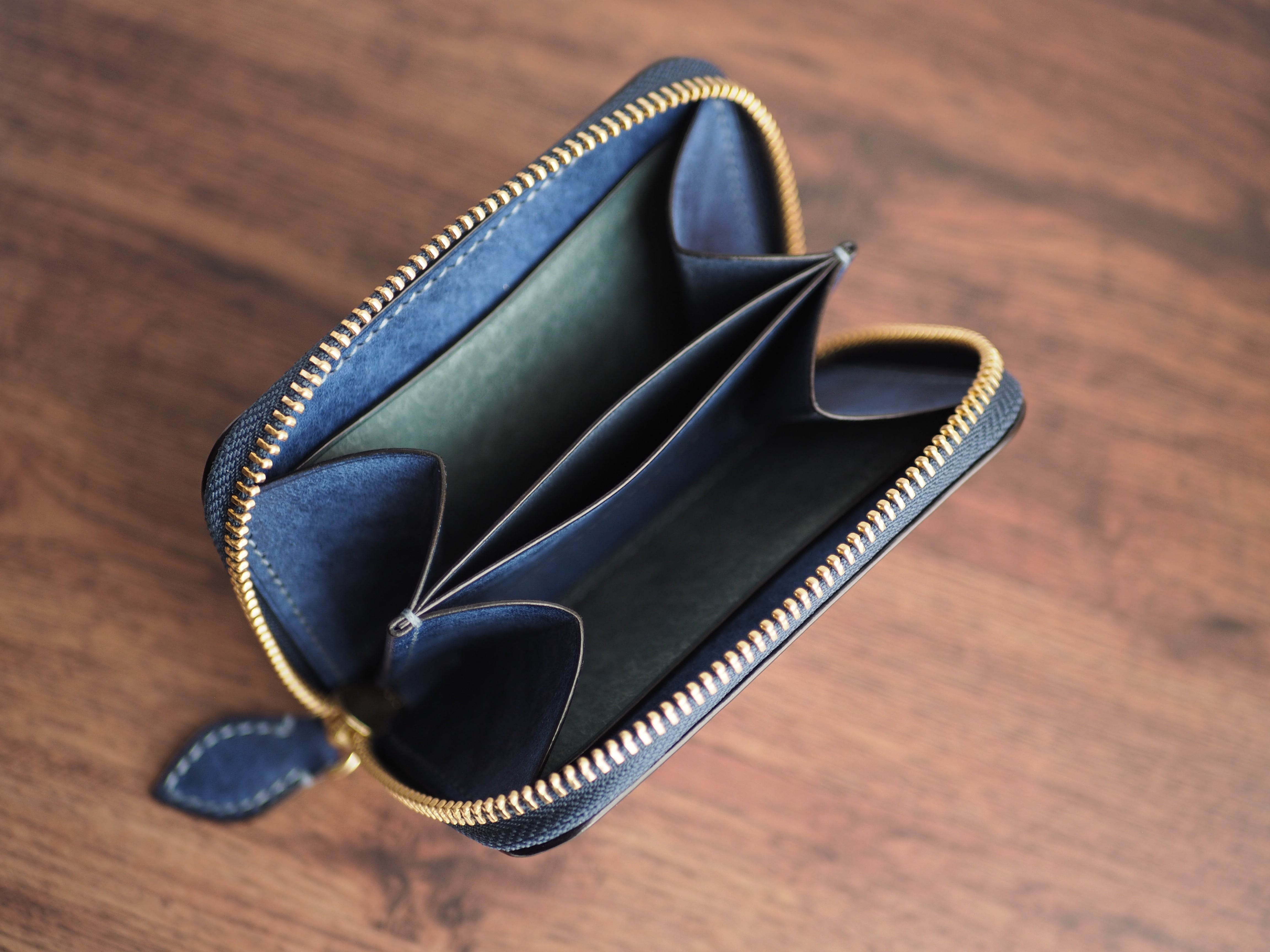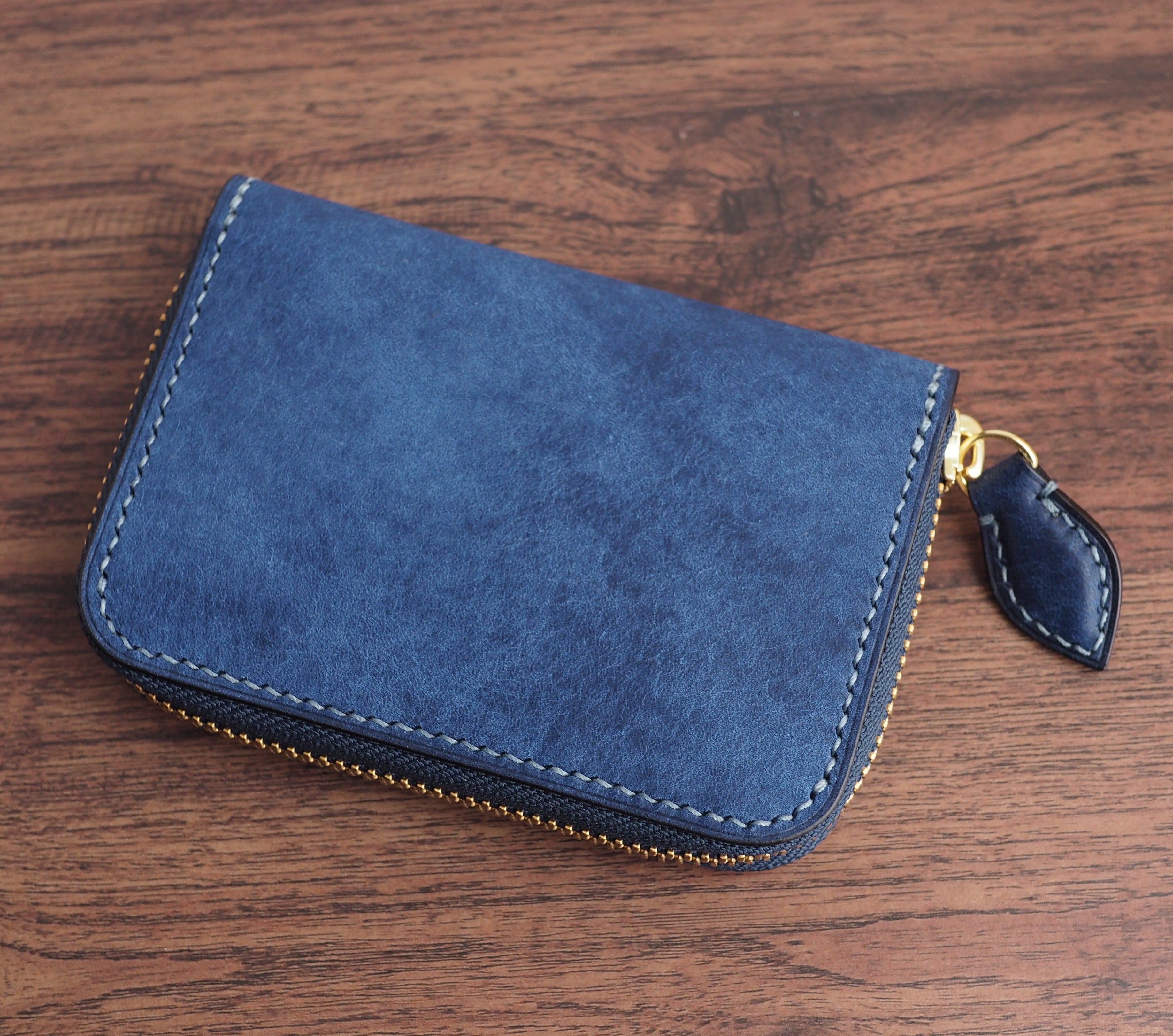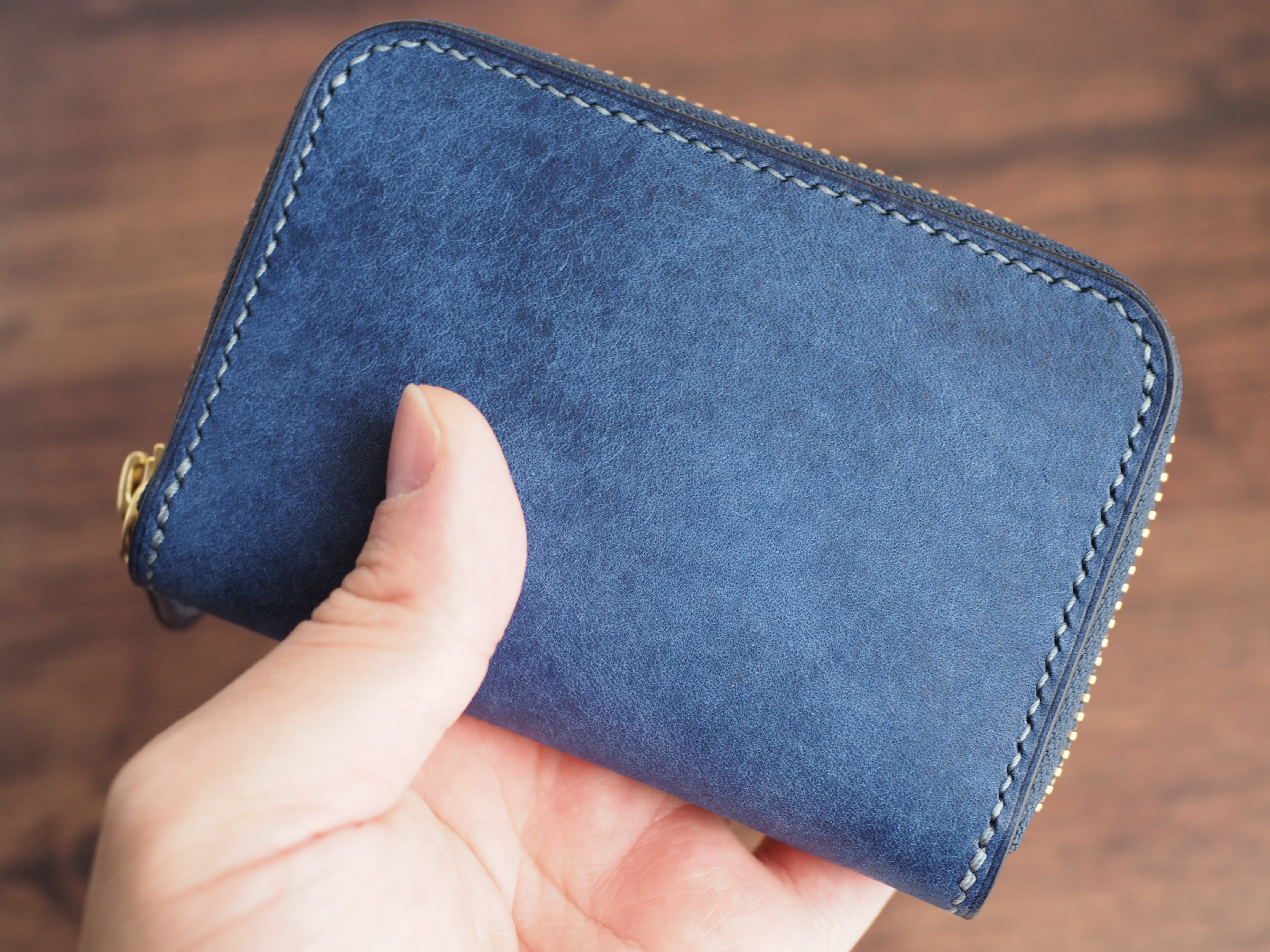 総手縫い│マルゴー│ラウンドファスナーのミニ財布│コバルト×アヴィオ
