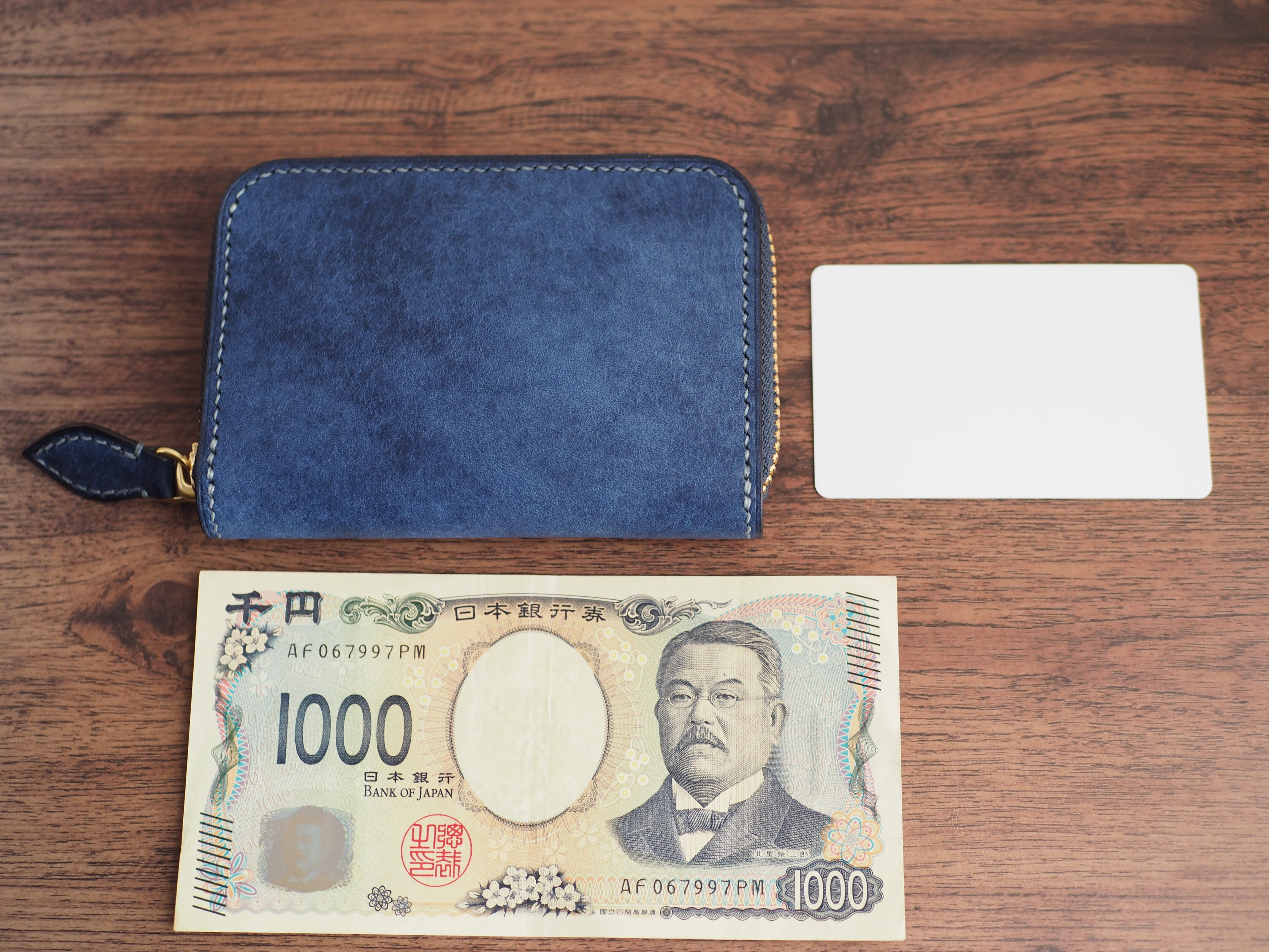 ・驚きのエイジング速度: 初めは和紙のようなざらついた触感ですが、使い込むことで驚くほど早く艶が生まれ、色が深まっていきます。落ち着いたコバルトは深い青黒へと劇的に変化し、一般的な革と比べ、短期間で手触りと風合いの向上をお楽しみいただけます。