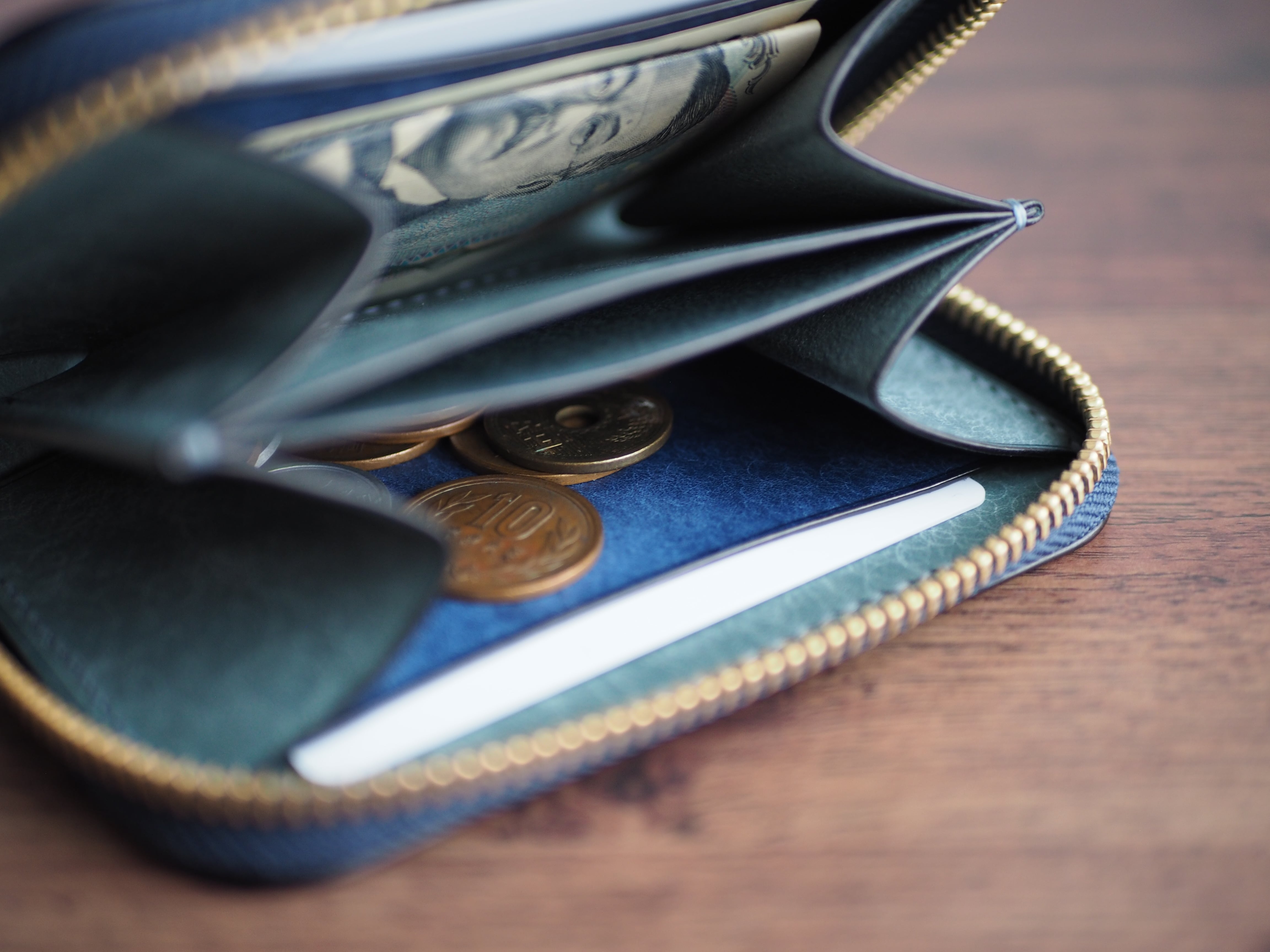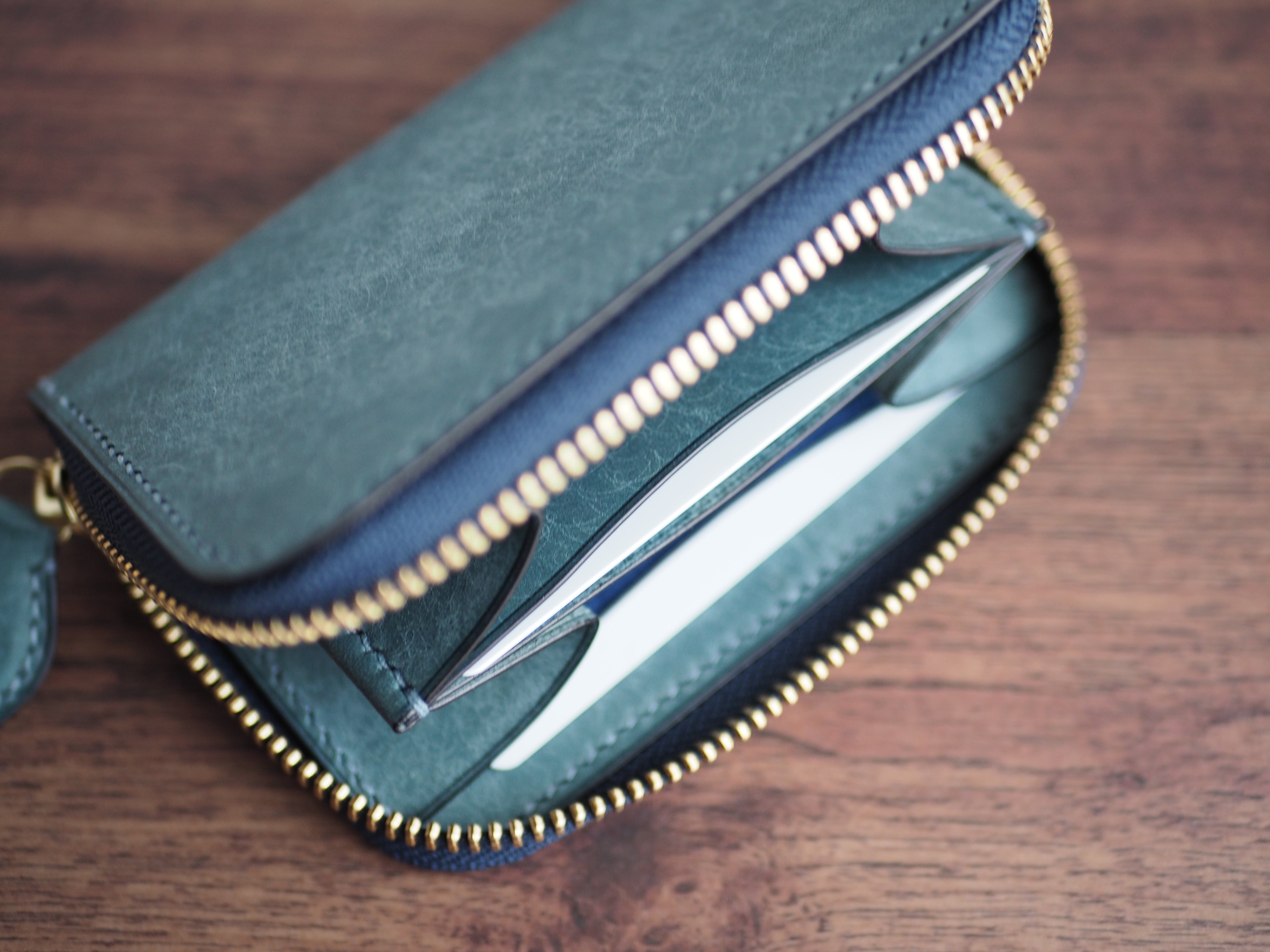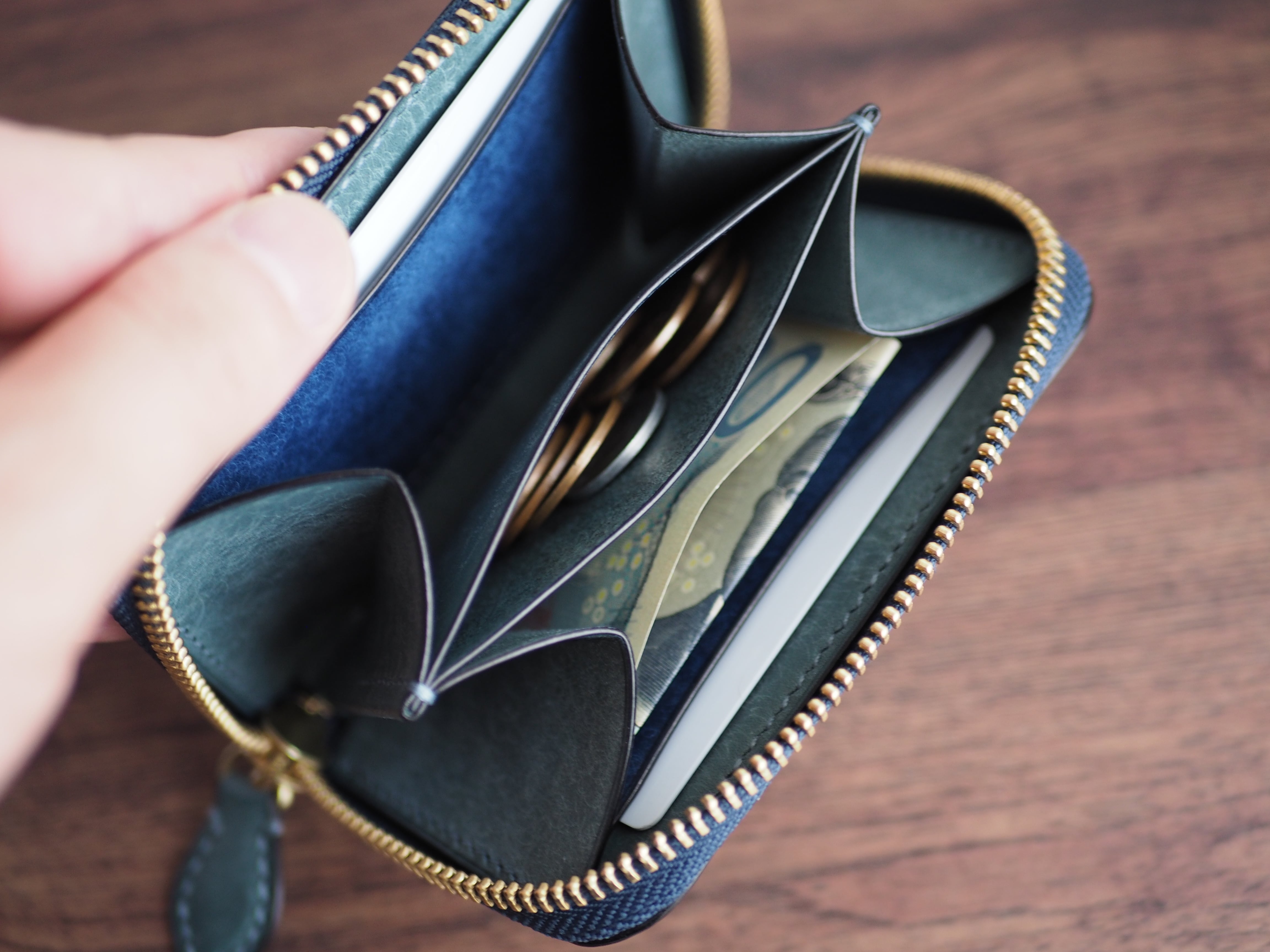 お札の収納: 基本は三つ折りで収納となります。二つ折りにした場合は、数枚程度ならば収納可能です(入れすぎるとファスナー開閉時に金具に干渉する可能性がございます)。