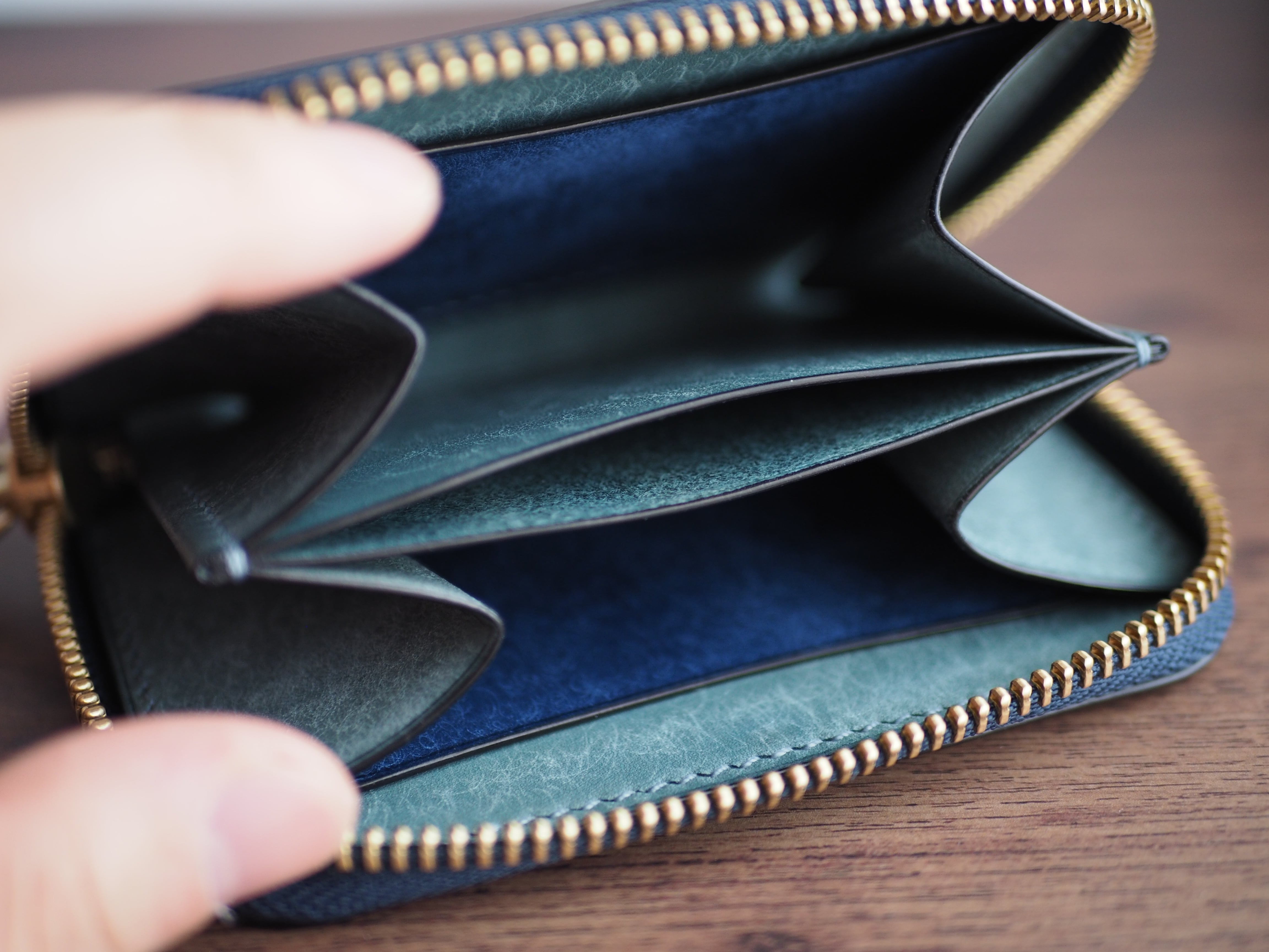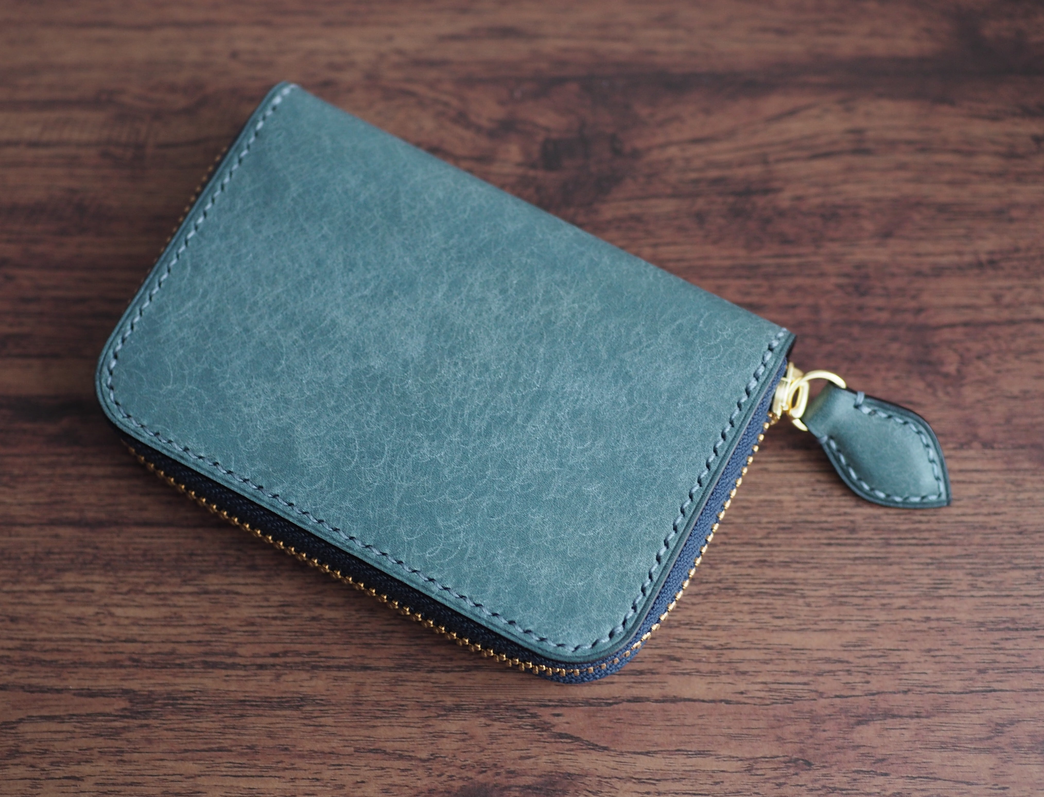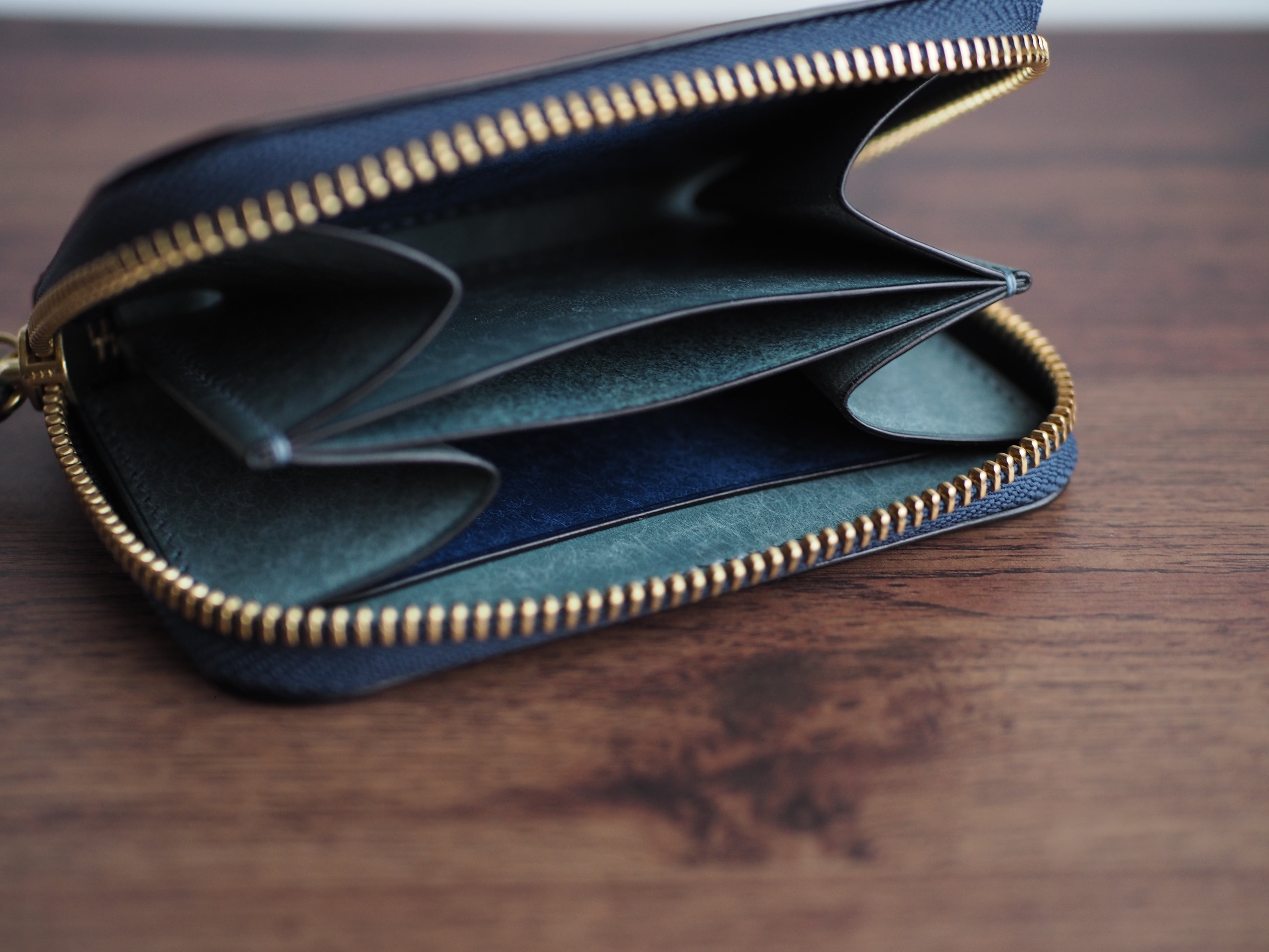 総手縫い│マルゴー│ラウンドファスナーのミニ財布│アヴィオ×コバルト